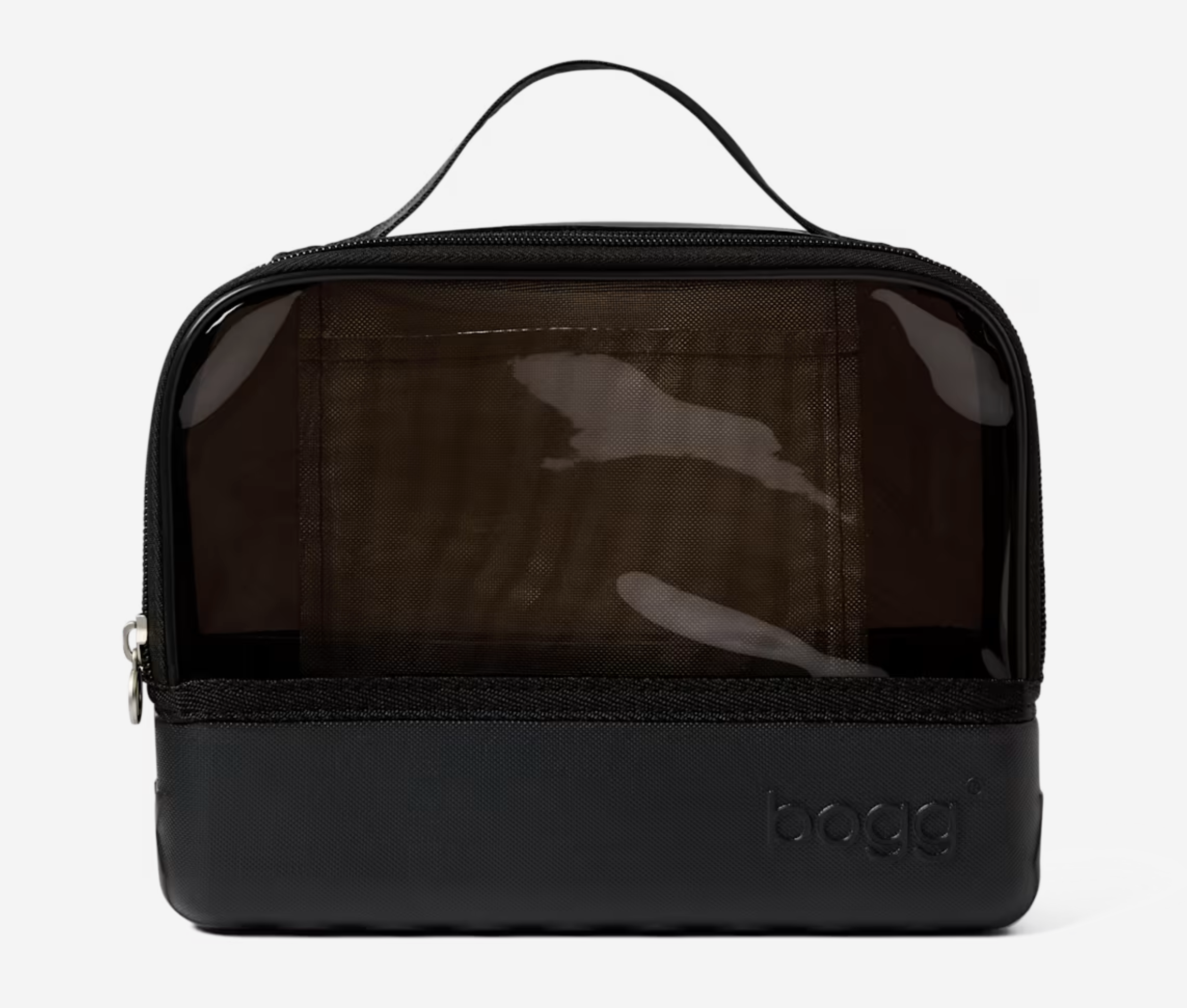 Compatible with all three Bogg Bag sizes, it features our signature tread base for tip-proof stability on vanities, counters, and shelves. A transparent topper, interior slip pocket, and wide U-shaped zipper make it easy to see and grab what you need. Finished with a sturdy top handle for grab-and-go convenience.