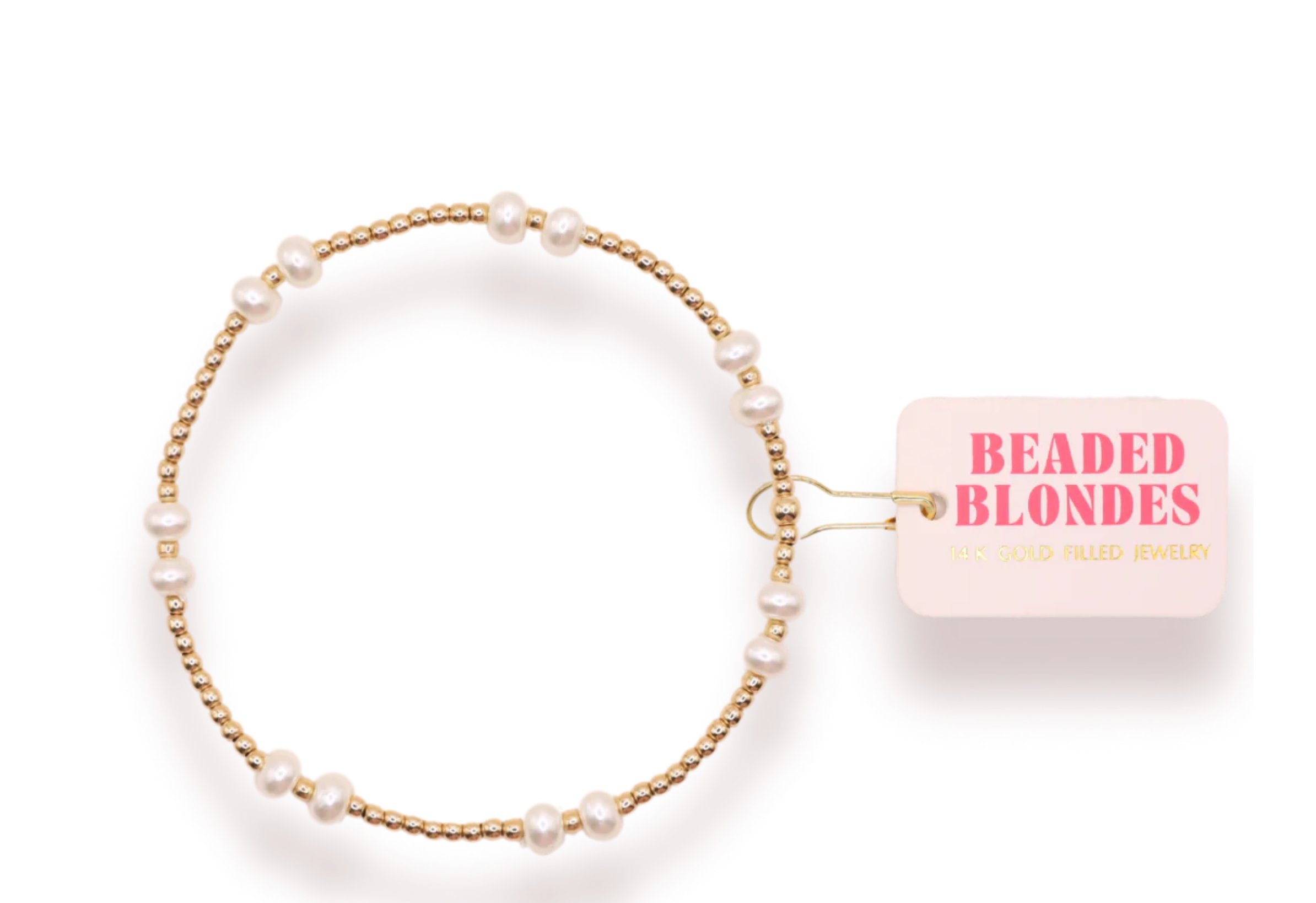 Beaded Blondes offers styles with both freshwater and synthetic pearls—this design features synthetic pearls for a perfectly symmetrical, uniform look.