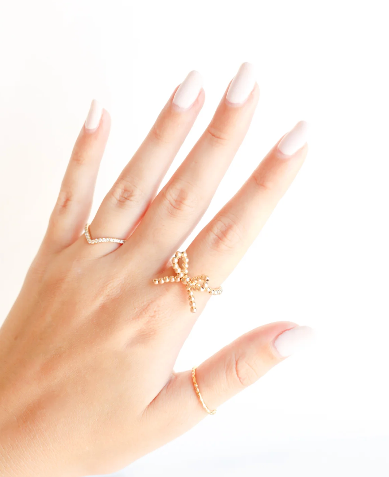 Our dainty gold filled bow beaded ring is a must have in your collection.