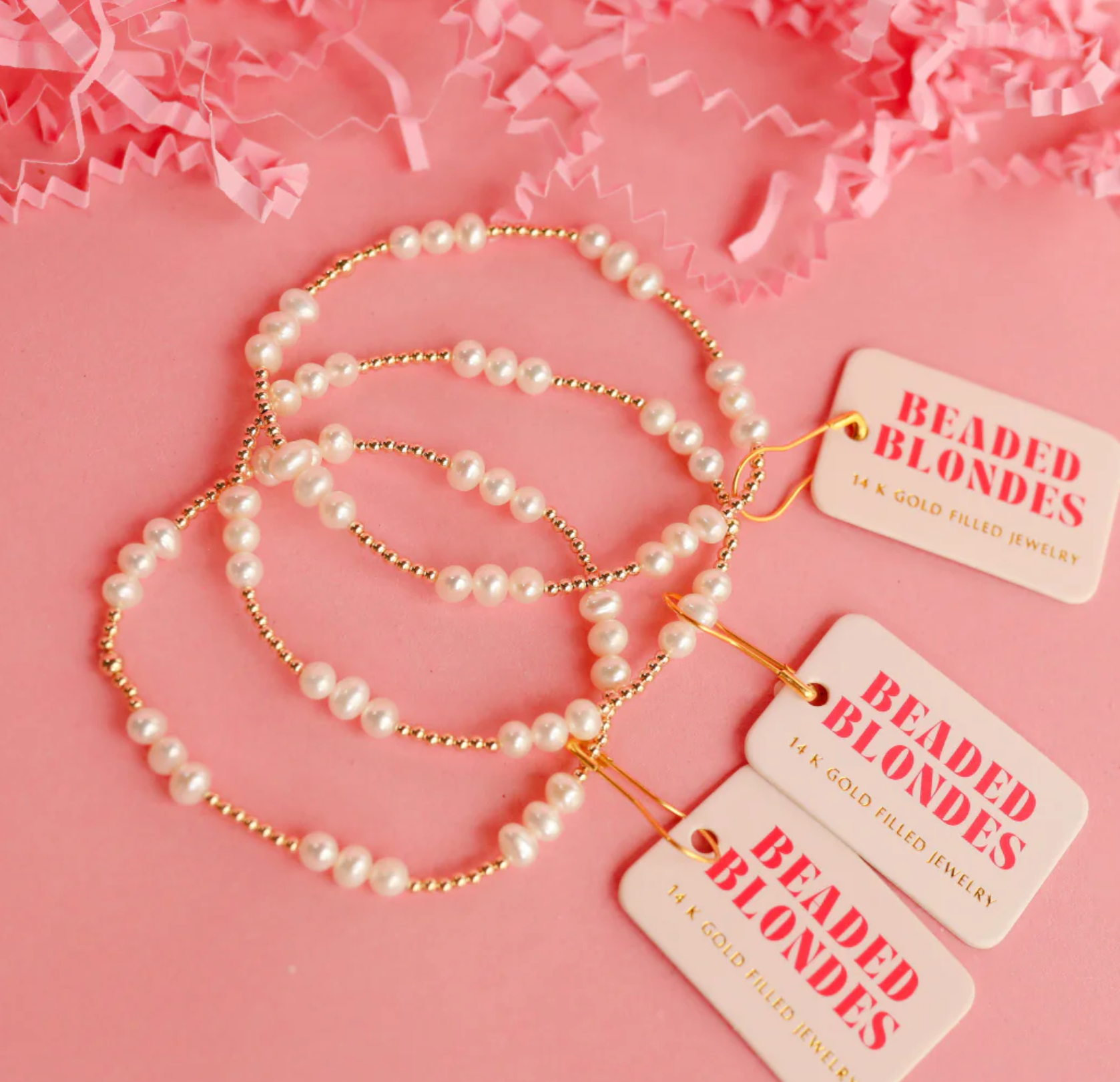 Beaded Blondes offers styles with both freshwater and synthetic pearls—this design features fresh water pearls perfect for everyday wear. Please note these will all be uniquely shaped and colors may vary as they are natural.