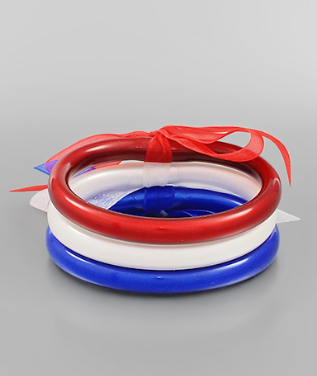 This 3-piece Patriotic Jelly Bangle Set comes with bangle options in all three colors of the American Flag. Show your patriotic colors with this fashionable accessory set, perfect for any summer occasion.