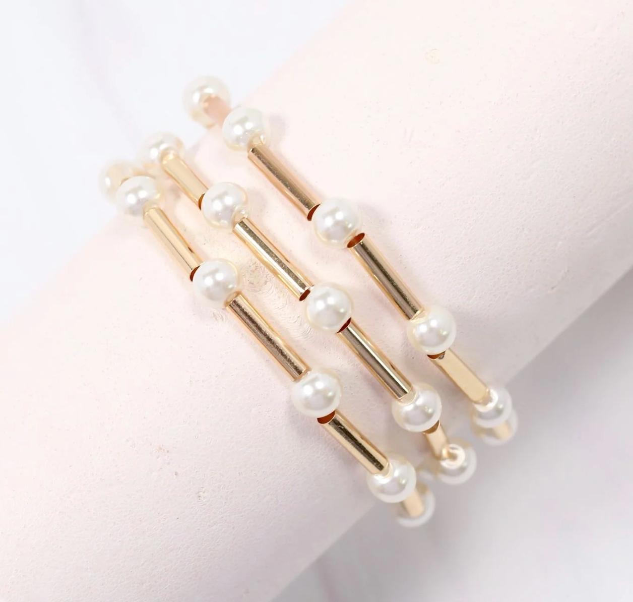 Pemberton Tube Stretch Bracelet Set PEARL