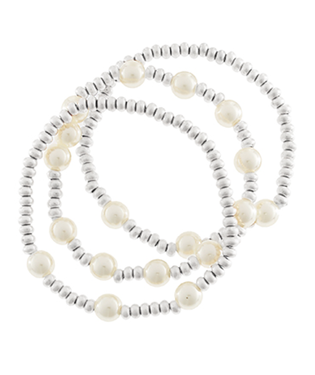 This 3 row pearl station bracelet is the perfect accessory to add a touch of elegance to any outfit. With its classic design and sophisticated look, this bracelet is sure to become a staple in your jewelry collection. Crafted with quality pearls, it exudes timeless beauty and luxury.