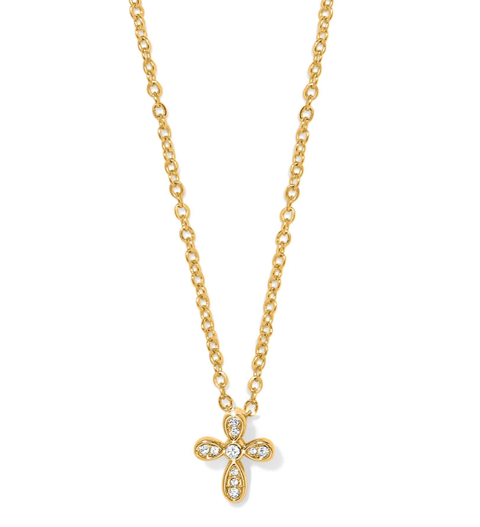 Petite jewelry makes its own statement with this delicate symbol of devotion capped with artisan hand-set crystals.