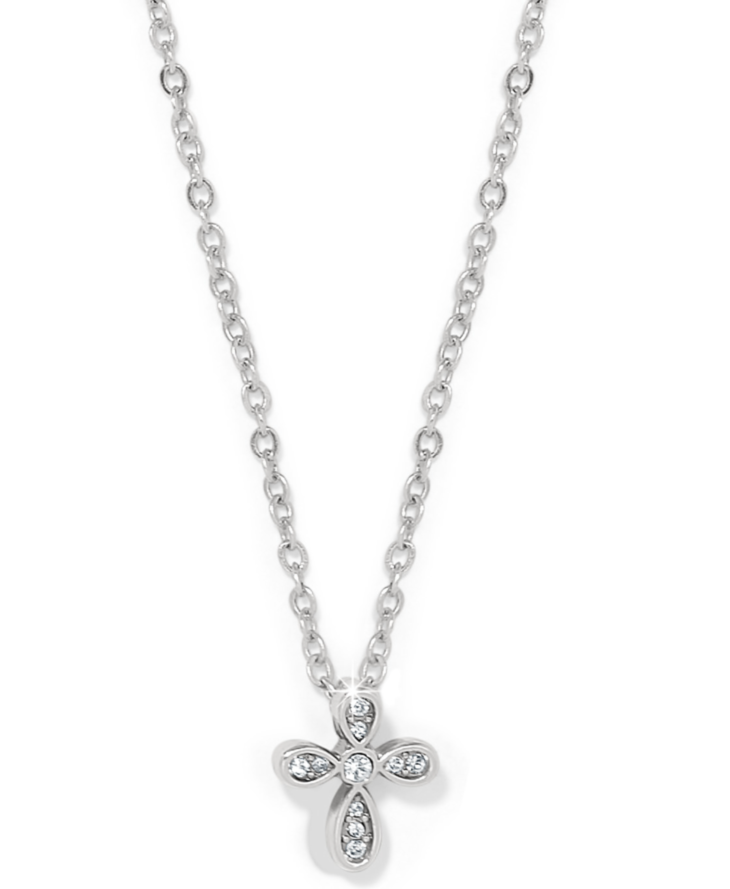 Petite jewelry makes its own statement with this delicate symbol of devotion capped with artisan hand-set crystals.