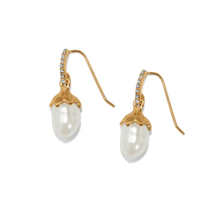Timeless, classic fine quality glass pearls are shaped into ovals and capped with silver flowers that have a finely brushed texture – a beautiful, feminine accent.