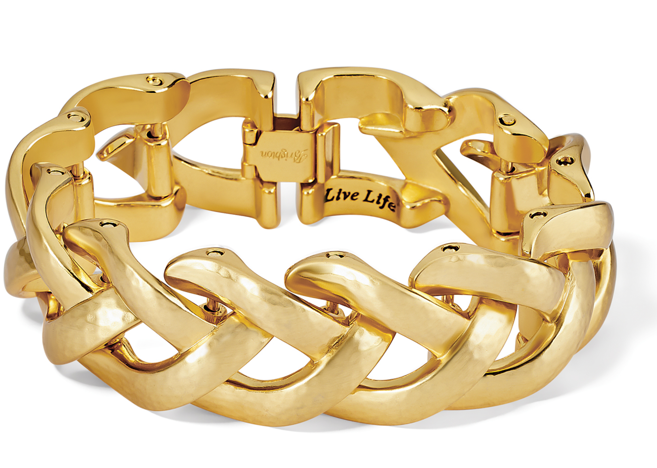 Your link to the Palace of Versailles? This chunky chain bracelet, so rich in its look you may just summon your royal coach. Inside reads, 'Live Life'