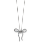The Illumina Bow necklace is flowy and delicate with a bit of whimsy. It truly has the characteristics of a real ribbon delicately knotted. Glistening with pave stones throughout, it looks like fine jewelry and appears to have movement, like a real ribbon. It is so delicate you could wear it with a simple white tee and jeans.