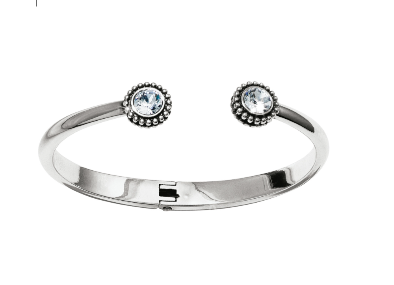 Hinged for ease of wear, this bracelet combines the sparkle of fine quality crystal with sleek, contemporary style.