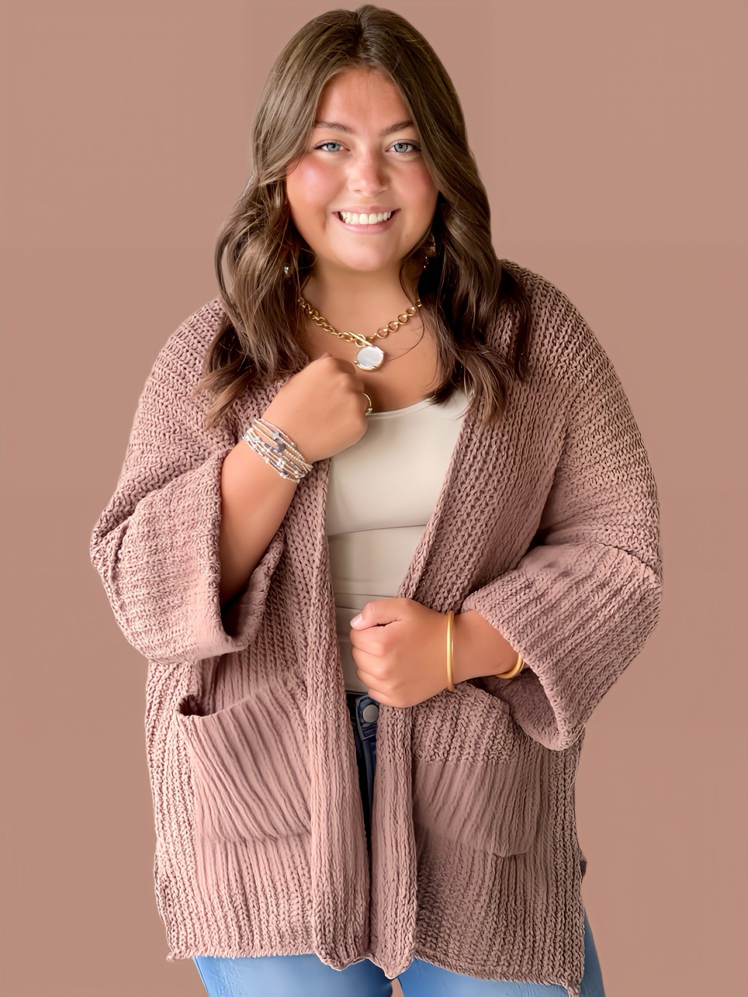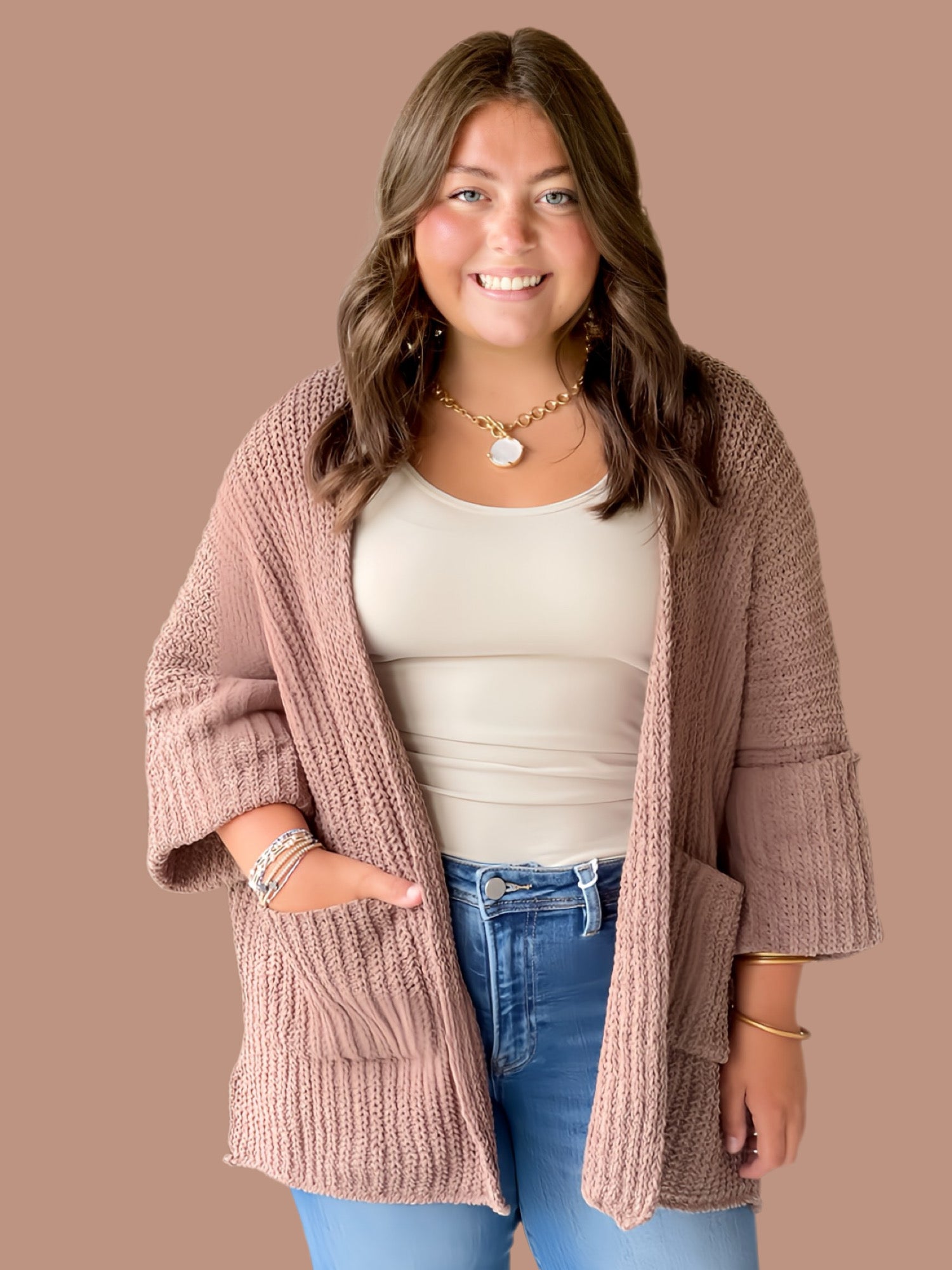 This edge-to-edge long sleeve cardigan offers a roomy fit for comfortable layering. Designed with practical pockets, it combines style and functionality, making it an ideal choice for everyday wear. Its versatile silhouette ensures effortless pairing with various outfits while providing warmth and convenience.