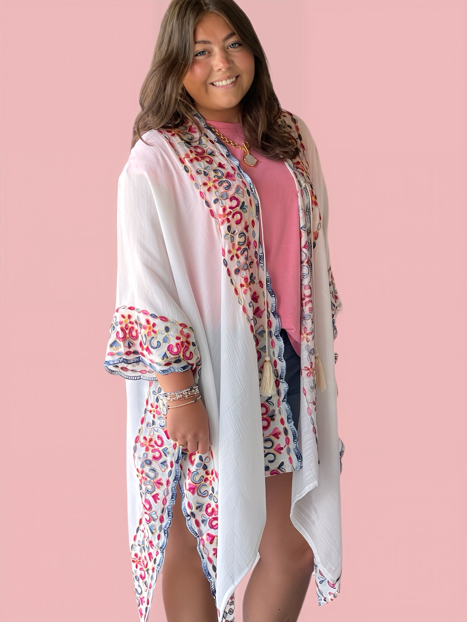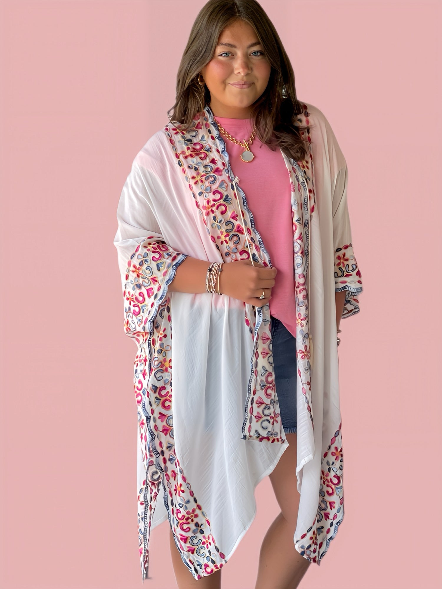 Elevate your summer style with the Senna Tie Front Ruana, a versatile and lightweight topper designed to complement any outfit. Its one-size-fits-all design ensures a comfortable, flattering fit, while the breathable fabric makes it ideal for warm weather and travel. Perfect for layering, this ruana adds effortless sophistication and practicality to your seasonal wardrobe.
