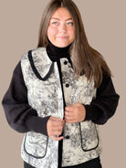 Toile Quilted Vest with Ruffle Collar