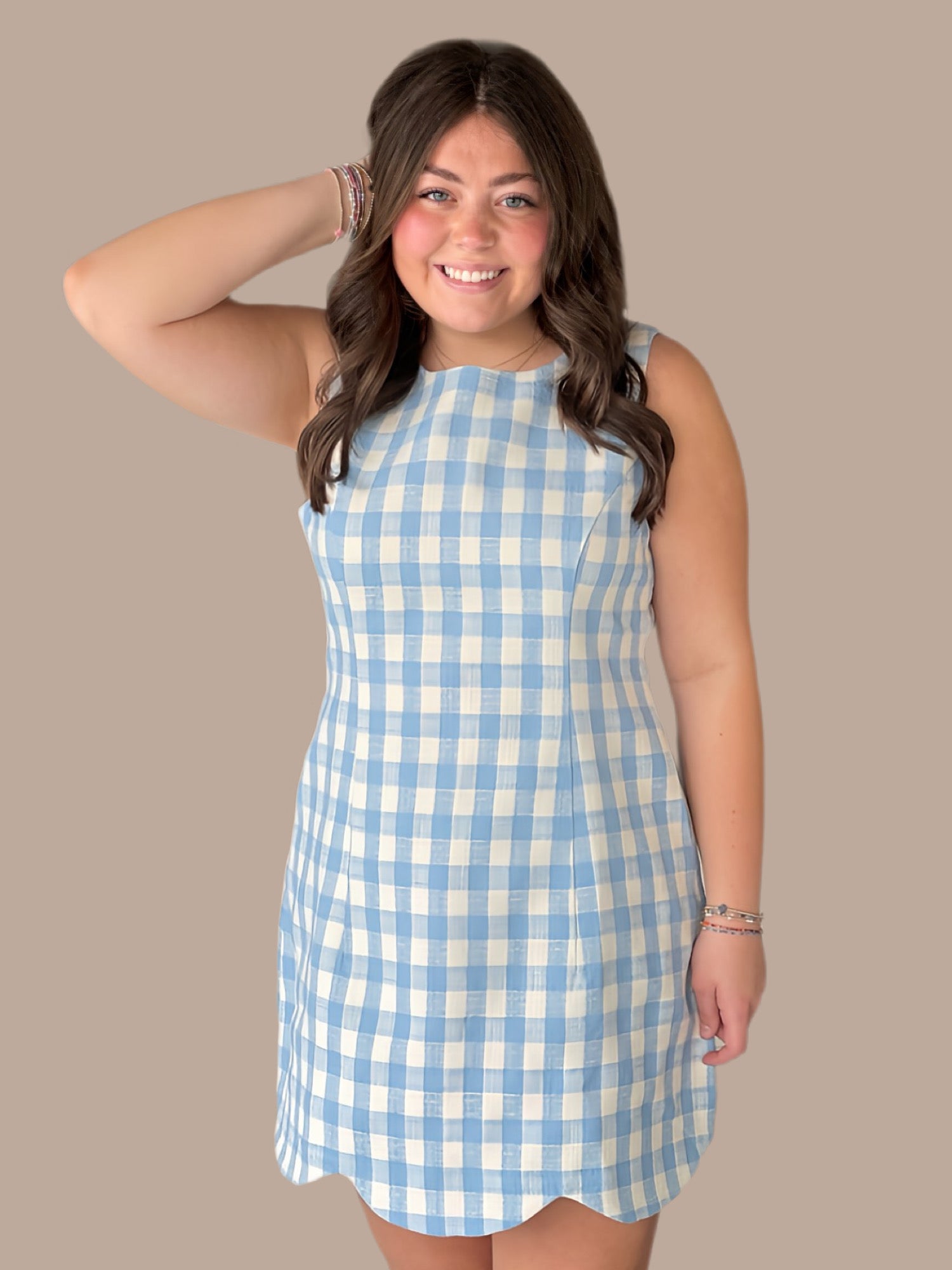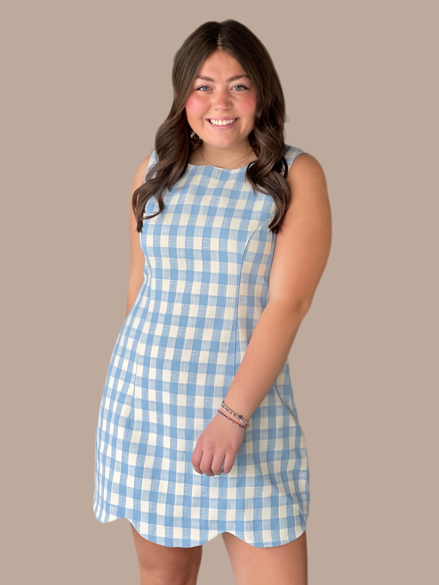 The Harper Plaid Scallop Hem Dress