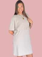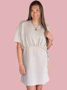 This expertly designed Cloud Soft Cinched Midi Dress features a refined round neckline and distinctive cloudy knit texture. The thoughtfully structured silhouette transitions seamlessly from a relaxed top to a sophisticated cinched bottom, creating a flattering hourglass effect. The premium midi length offers versatile styling options while the specialized knit construction ensures lasting shape retention and exceptional comfort throughout wear.