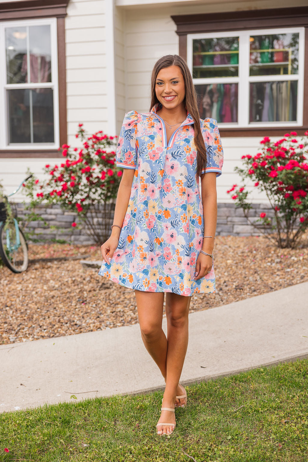 This pink/blue floral dress is a perfect addition to your wardrobe. Made with high-quality fabric, it offers both comfort and style. The vibrant floral pattern adds a touch of femininity, making it suitable for both casual and formal occasions. Its versatile design allows for easy mix and match with various bottoms, providing you with endless styling options. Get ready to turn heads in this trendy and chic dress.