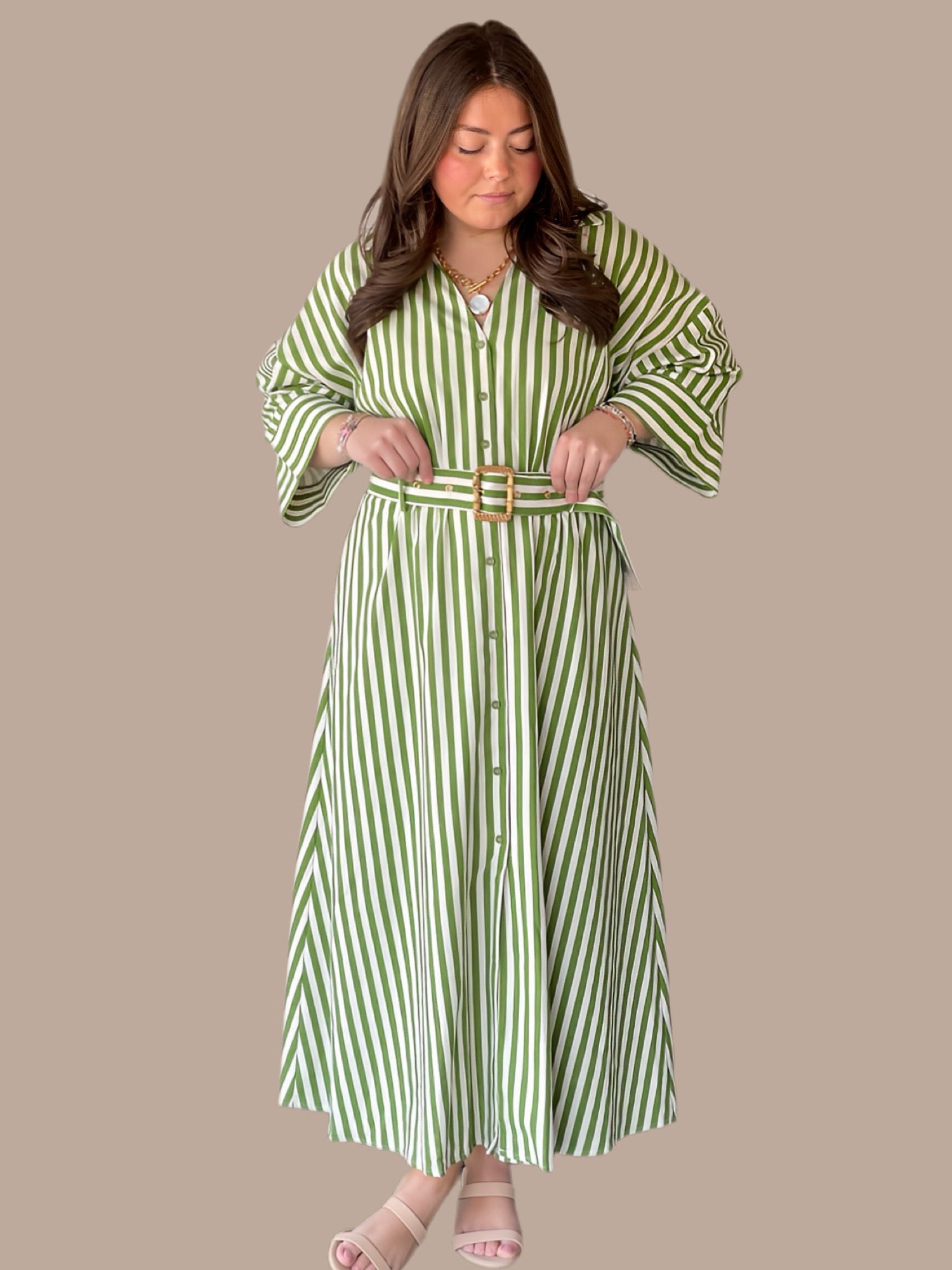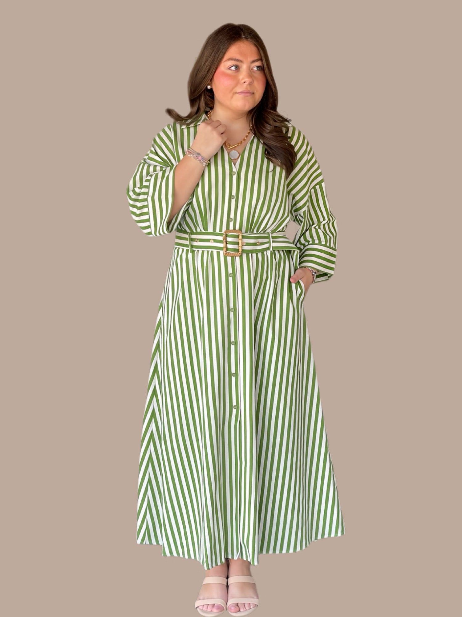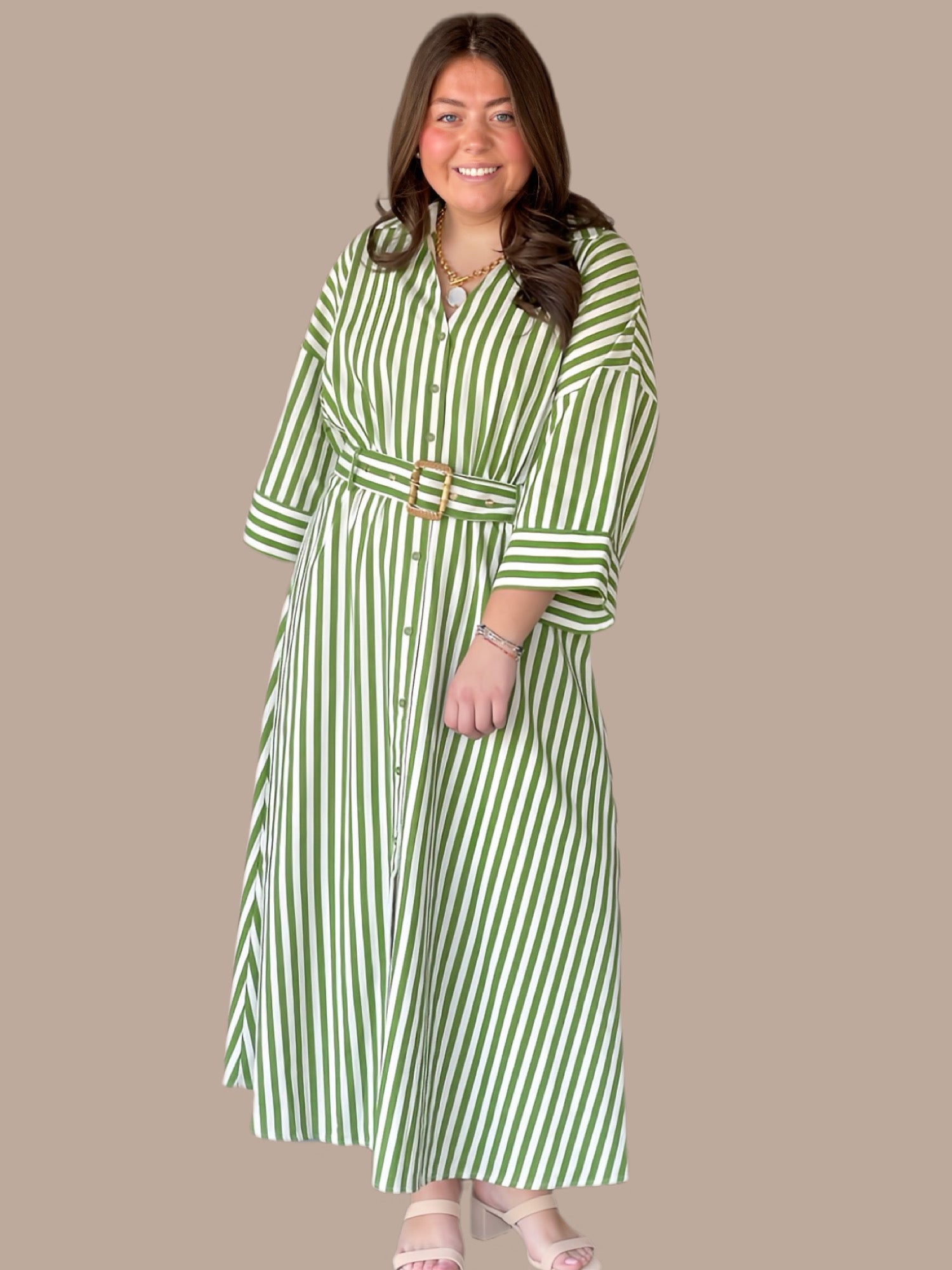 Fresh Picked Green Stripe Shirt Dress