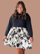 This elegant dress features long sleeves and a sophisticated 3D floral pattern, adding depth and texture to its design. Perfect for occasions where refined style is essential, it combines comfort with a visually striking look that enhances your presence effortlessly.