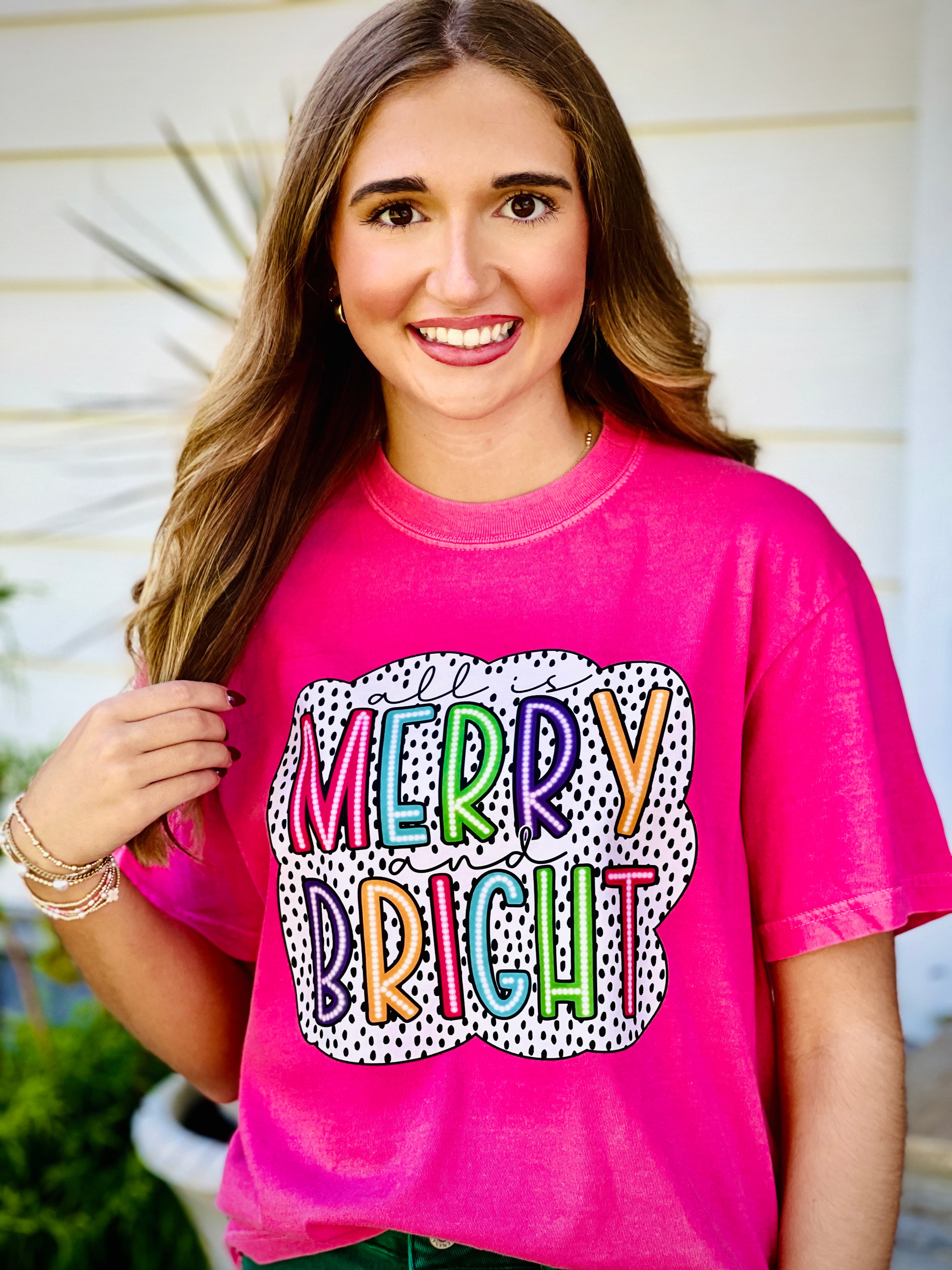 This All is Merry and Bright Tee will bring joy to your wardrobe with its festive design. Made from high-quality fabric, it offers comfort and durability. The perfect addition to your holiday attire, this tee is 100% festive and 100% stylish.