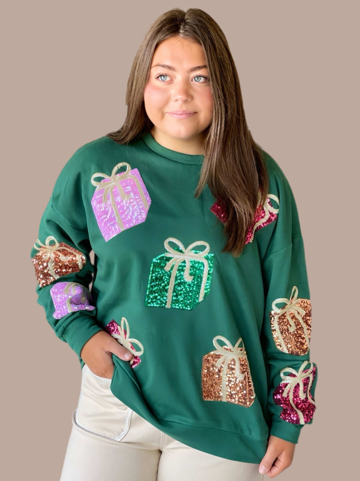 Celebrate the holiday season in style with this embroidered fleece pullover featuring elegant sequin Christmas gift box designs. Crafted for warmth and comfort, its soft fleece fabric provides cozy insulation, while the intricate embroidery and shimmering sequins add a festive, refined touch. Ideal for layering during cold weather, this pullover combines seasonal charm with expert craftsmanship, making it a sophisticated choice for holiday gatherings and everyday winter wear.