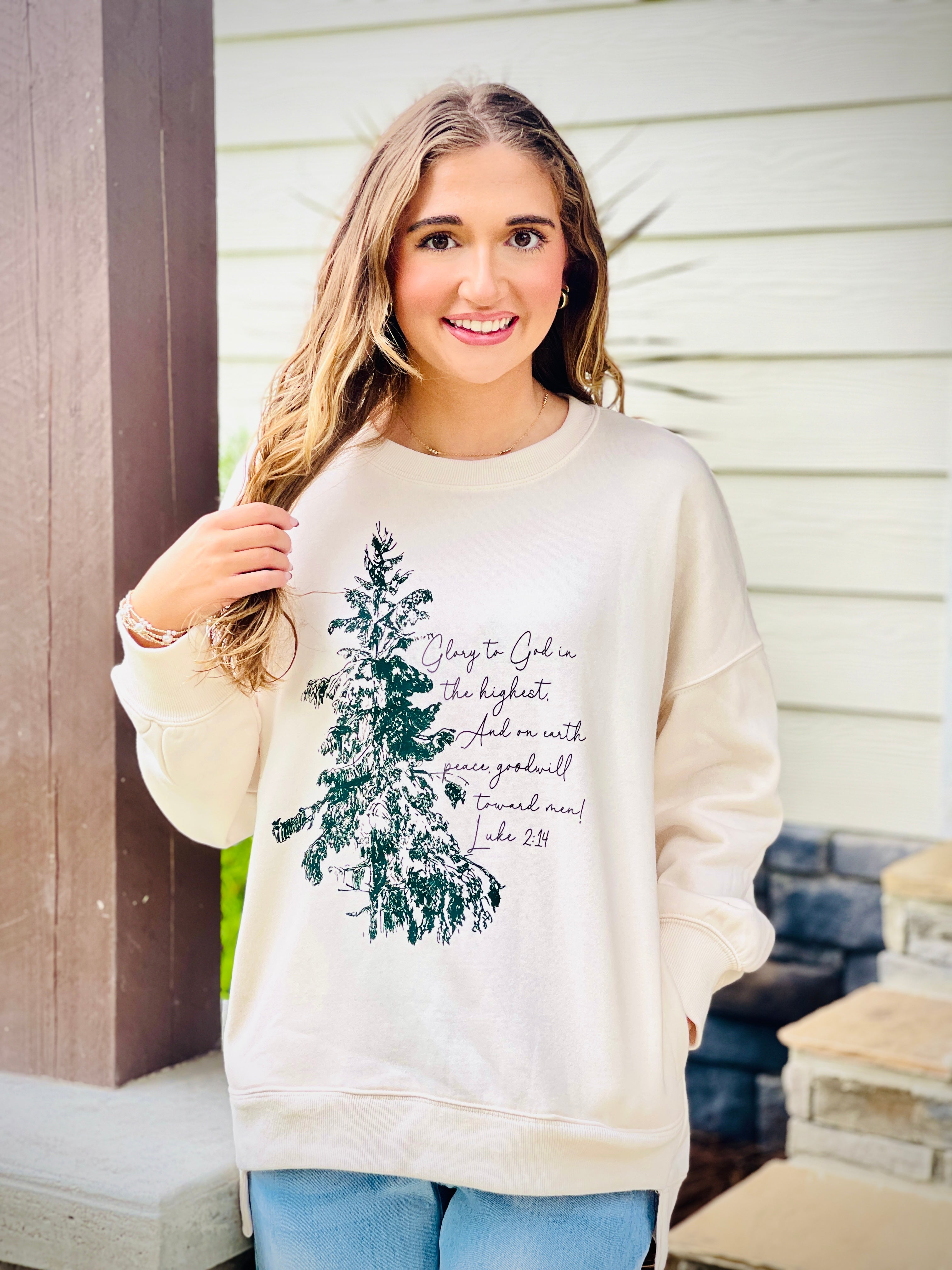 Celebrate the season with the Glory to God Christmas sweatshirt. Made with soft and cozy fabric, this sweatshirt features a festive design that spreads the message of Christmas. Stay warm while proudly displaying your faith. Perfect for holiday gatherings and as a thoughtful gift.