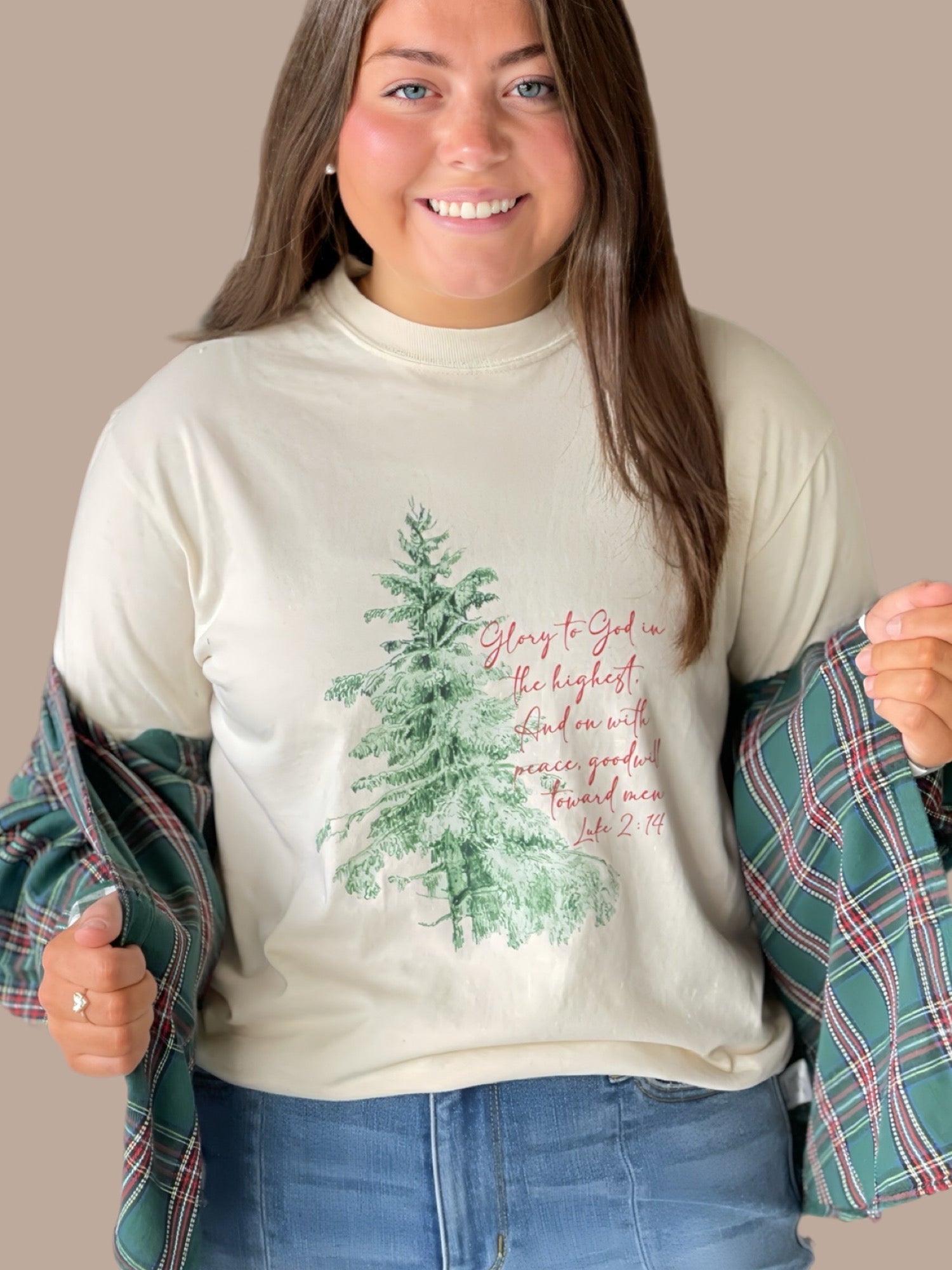 This Glory To God Graphic Tee is the perfect addition to your holiday wardrobe. Made with high-quality materials, this Christmas tee features a bold and impactful design that proudly declares your faith. With its comfortable fit and stylish look, it's the ideal way to celebrate the season while spreading a message of love and hope.