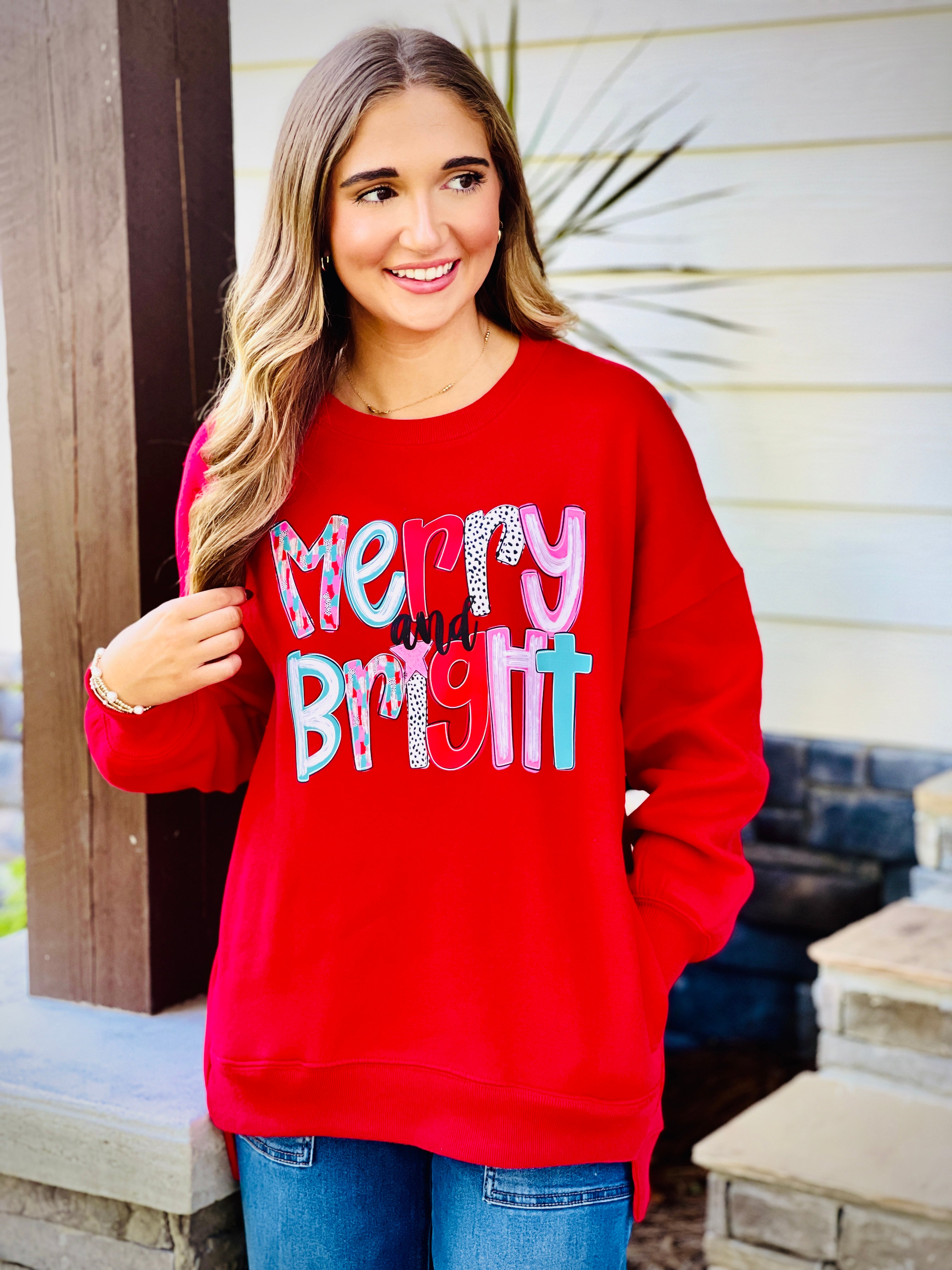 Stay cozy and festive this holiday season with our Merry and Bright Red Sweatshirt. With its vibrant red color and "Merry and Bright" print, this sweatshirt is the perfect way to spread holiday cheer. Made with high-quality material, you'll stay warm and comfortable all winter long.