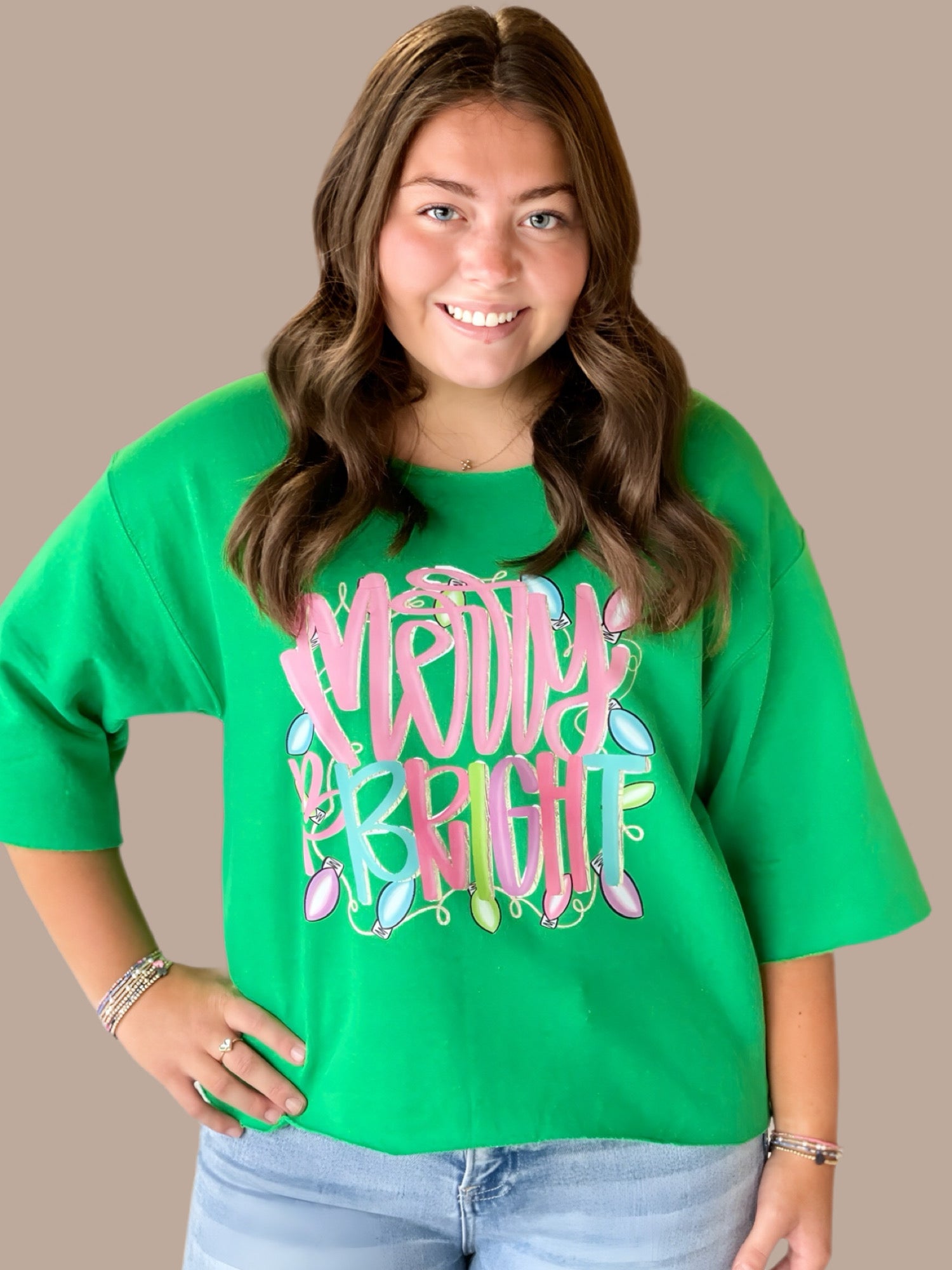Stay cozy and festive with our Merry and Bright Sweatshirt. This 3/4 sleeve sweatshirt is the perfect addition to your holiday wardrobe, providing both comfort and style. Spread some holiday cheer with this must-have piece.