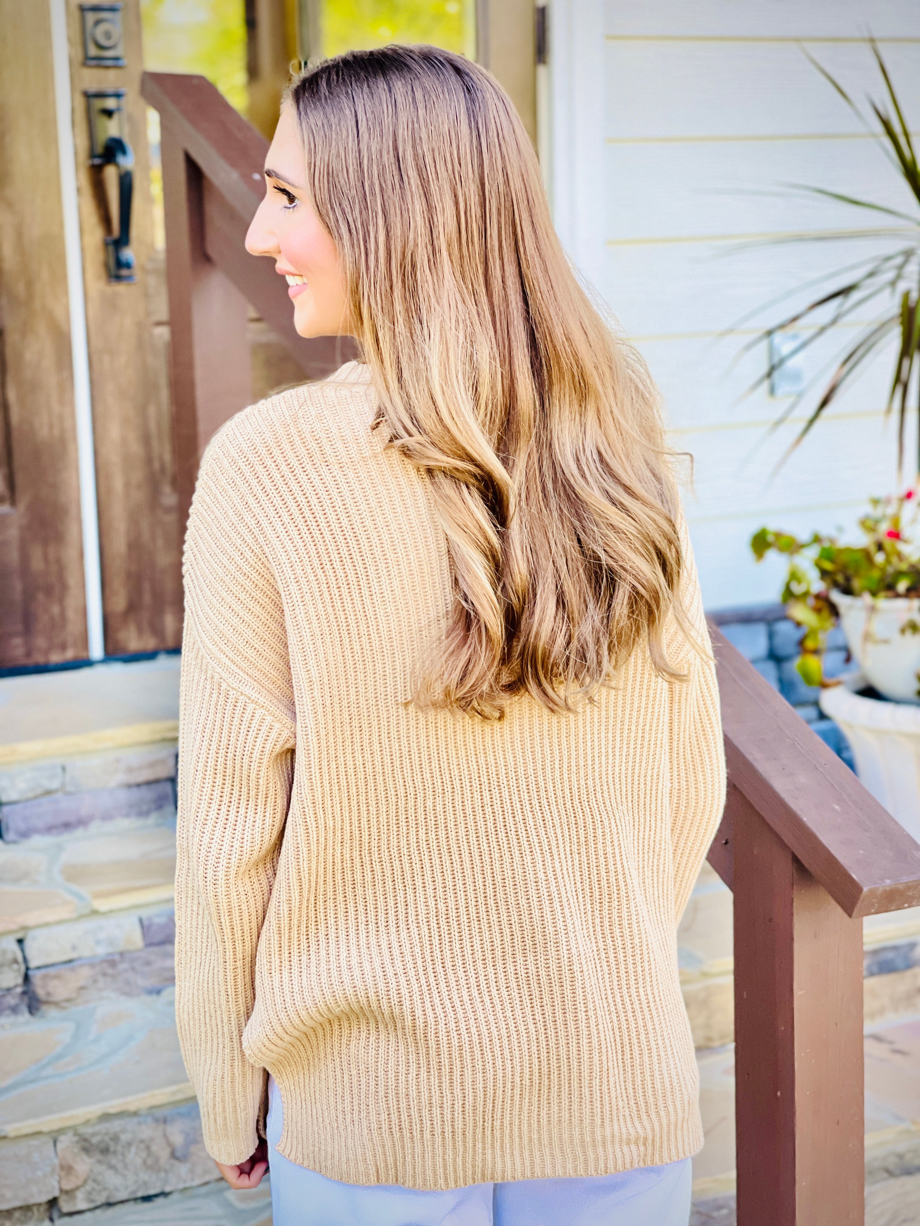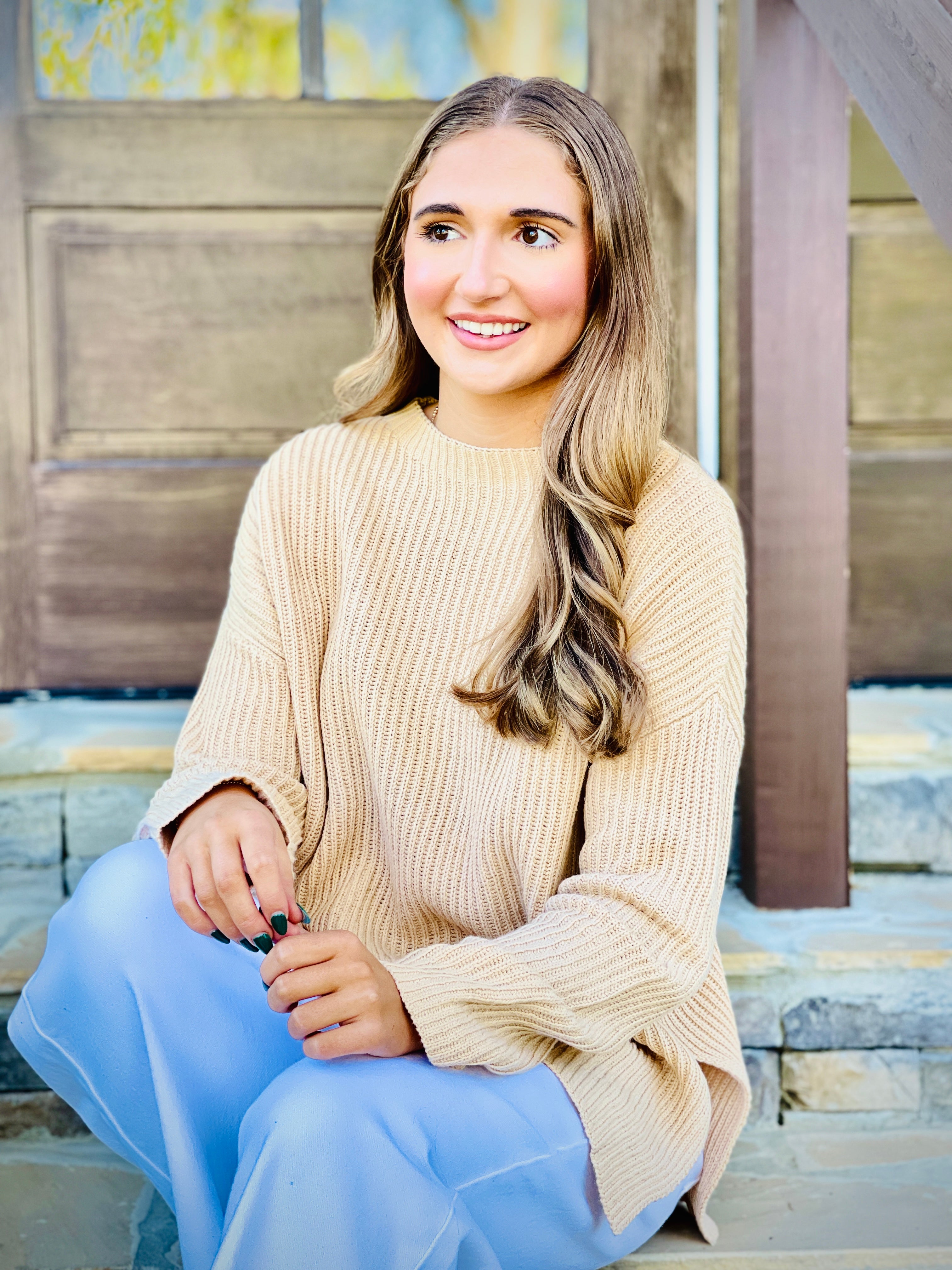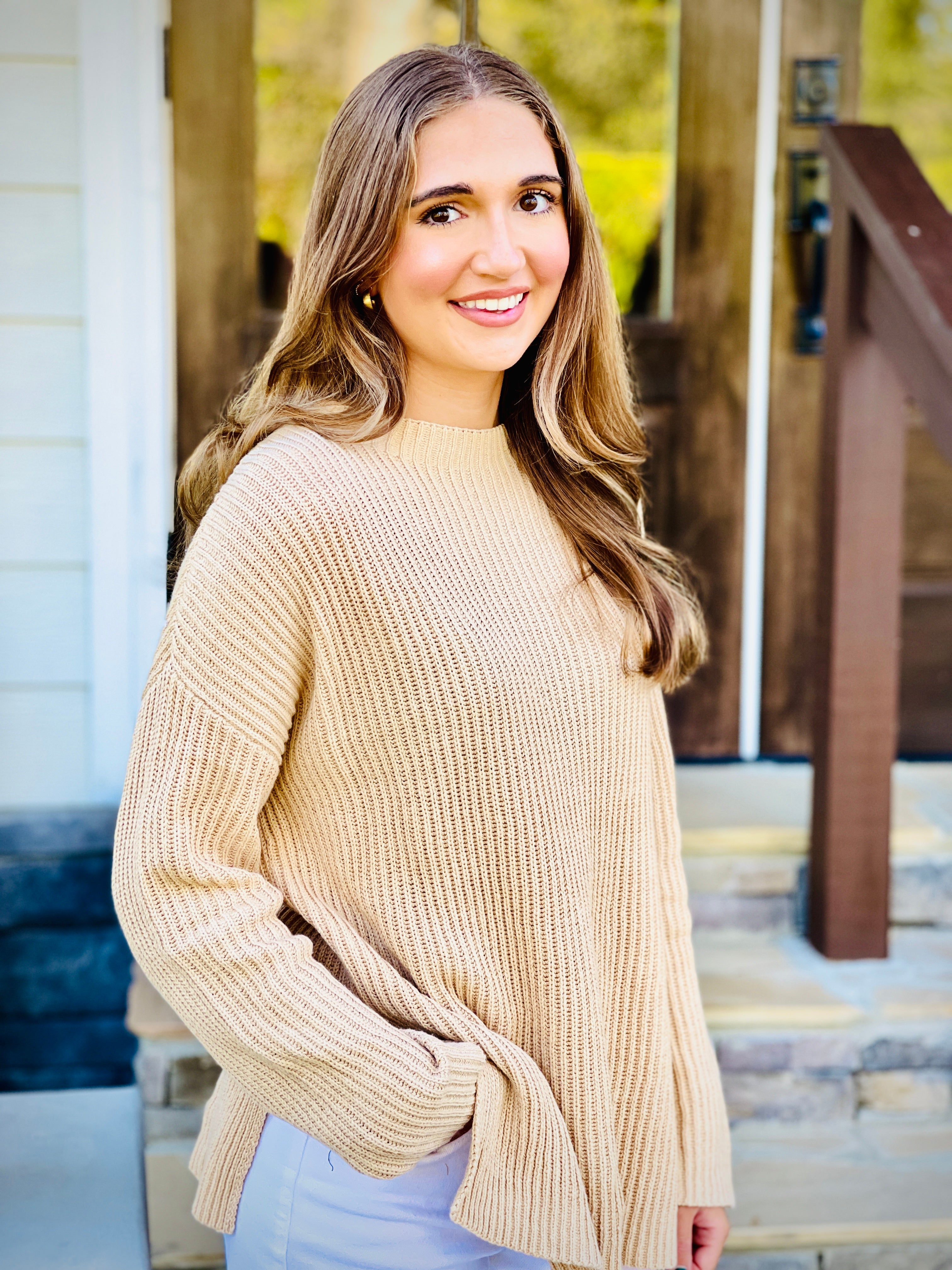 This apricot plain sweater is oversized and features side slits. Its relaxed fit and soft fabric make it perfect for staying cozy and stylish during the colder months. With a touch of apricot, it adds a subtle pop of color to any outfit. Expertly crafted for comfort and style.