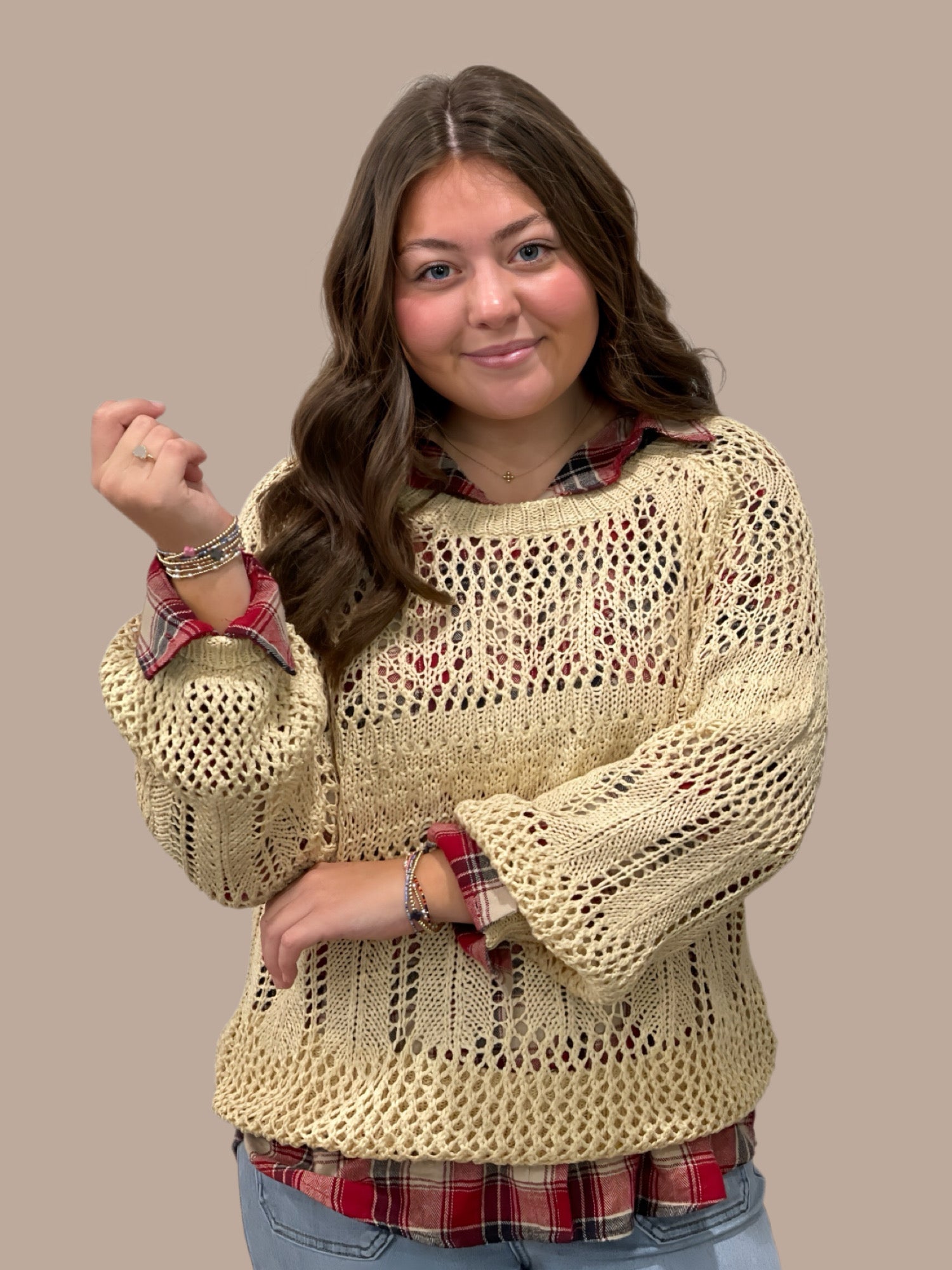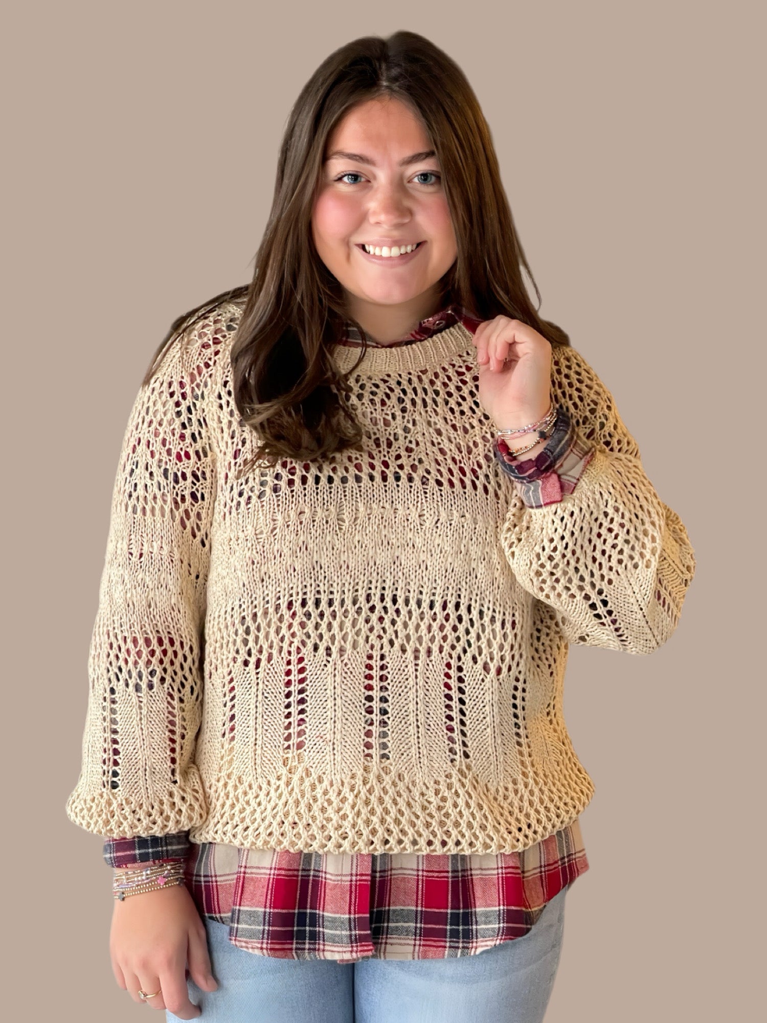 Crafted with precision, this hollow round neck crochet pullover sweater showcases intricate openwork detailing that balances breathability with sophisticated style. The relaxed fit and classic crew neckline offer versatile layering options, while the delicate crochet construction provides visual texture and dimension. Perfect for transitional seasons, this piece pairs effortlessly with basics or statement pieces. The hollow weave design creates an airy aesthetic without compromising warmth, making it an essential addition to any refined wardrobe.