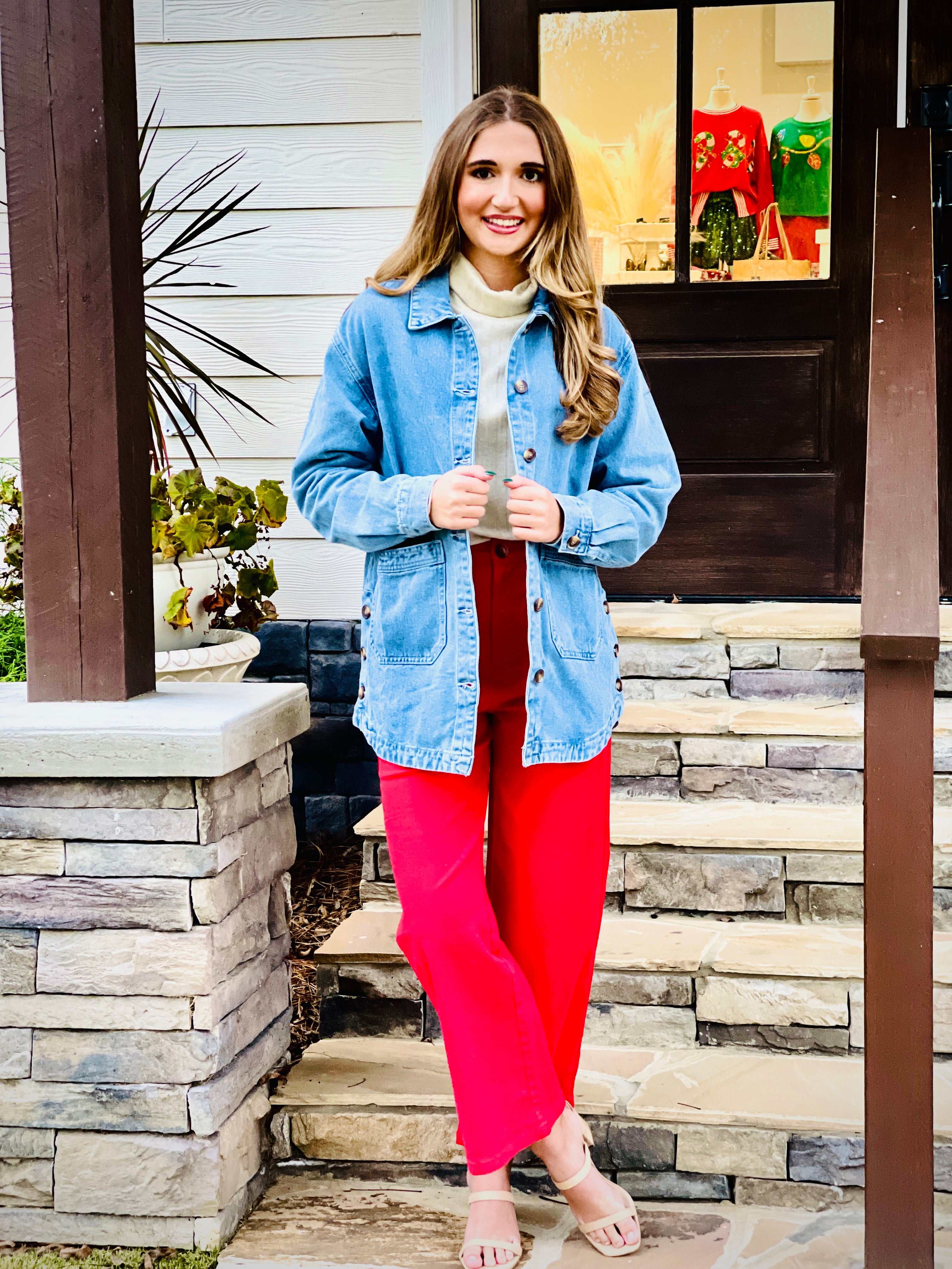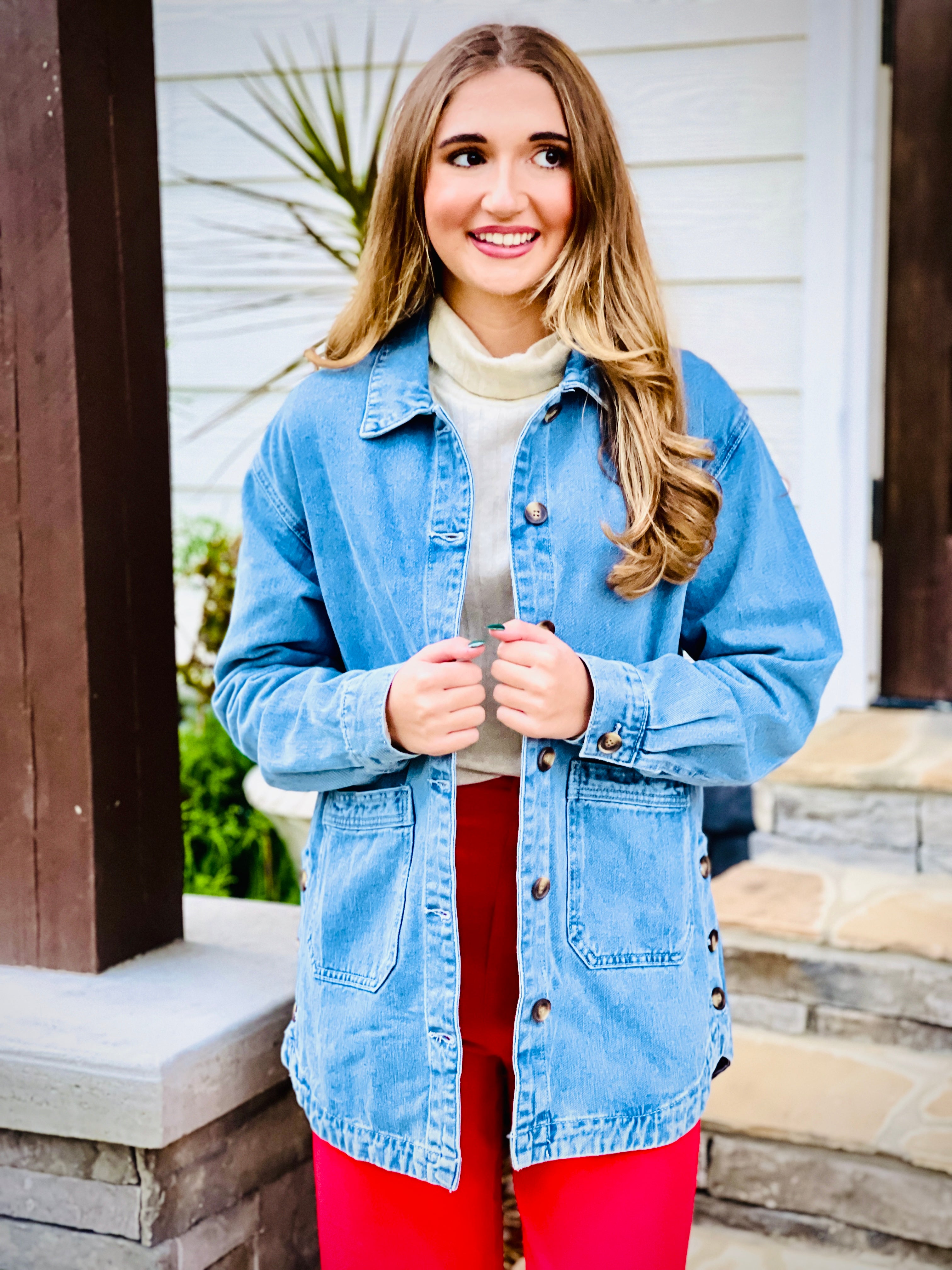 Stay stylish and organized with our Dusk Blue Denim Jacket. Featuring convenient side pockets and easy-to-use button closures, this jacket is perfect for on-the-go individuals. With its bold color and durable denim material, this jacket is a fashion must-have. Upgrade your wardrobe today!