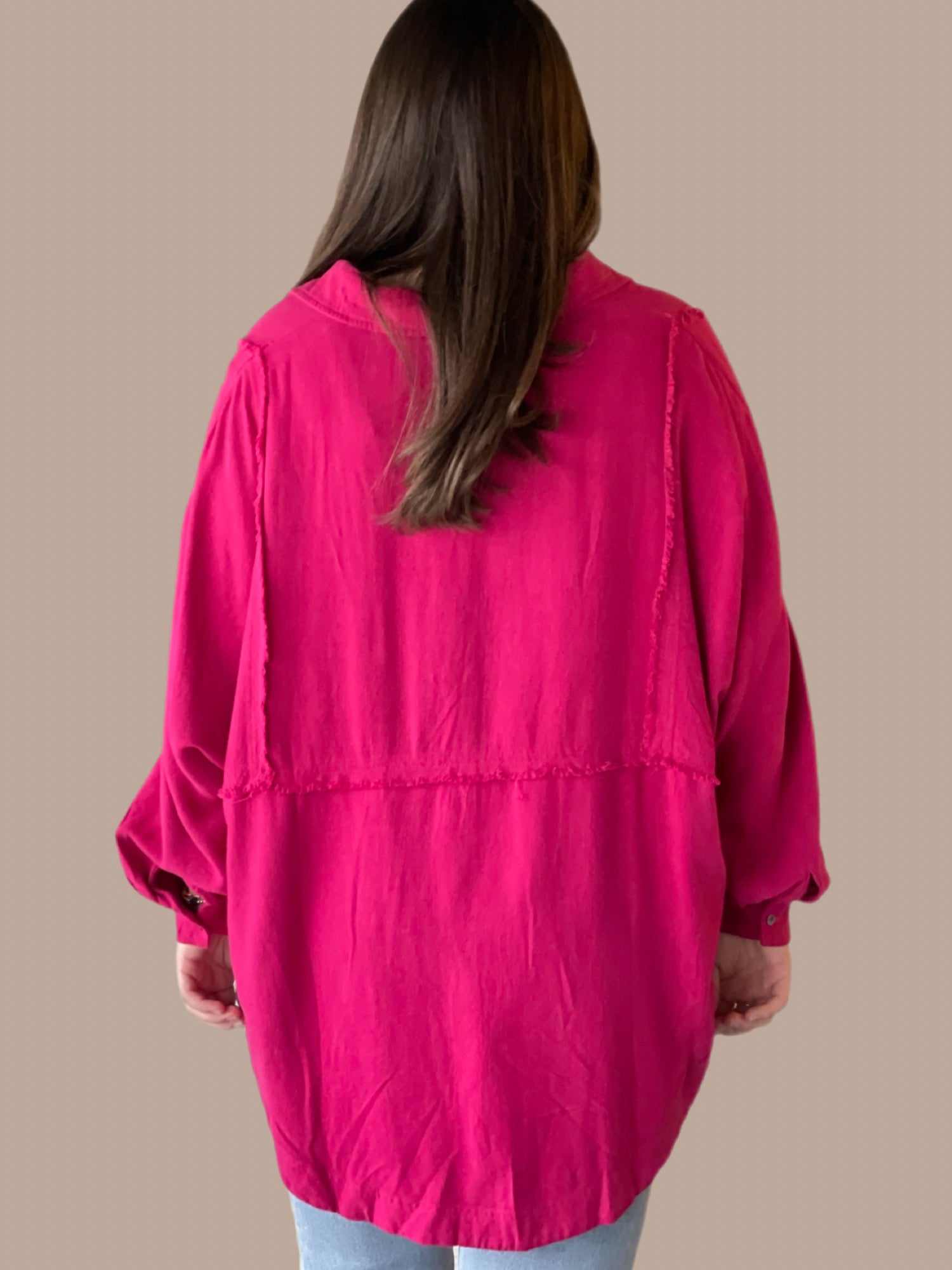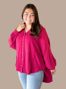 Linen Contrast Stitch High-Low Button Up