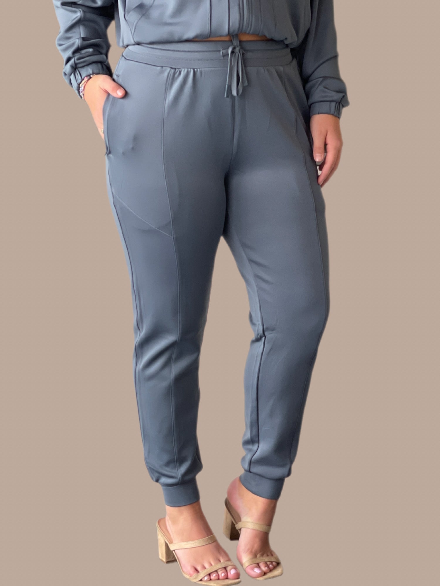 On the Move Zip-Up Jogger Set Engineered for active lifestyles, this two-piece jogger set combines functionality with contemporary style. The zip-up top features a streamlined silhouette perfect for layering, while the matching joggers offer a tapered fit with practical pockets. Constructed from breathable, moisture-wicking fabric, this set transitions seamlessly from workouts to casual outings. The elastic waistband and adjustable cuffs ensure a customized fit, while the premium construction withstands frequent wear and washing. Ideal for those who prioritize comfort without compromising on polished aesthetics.