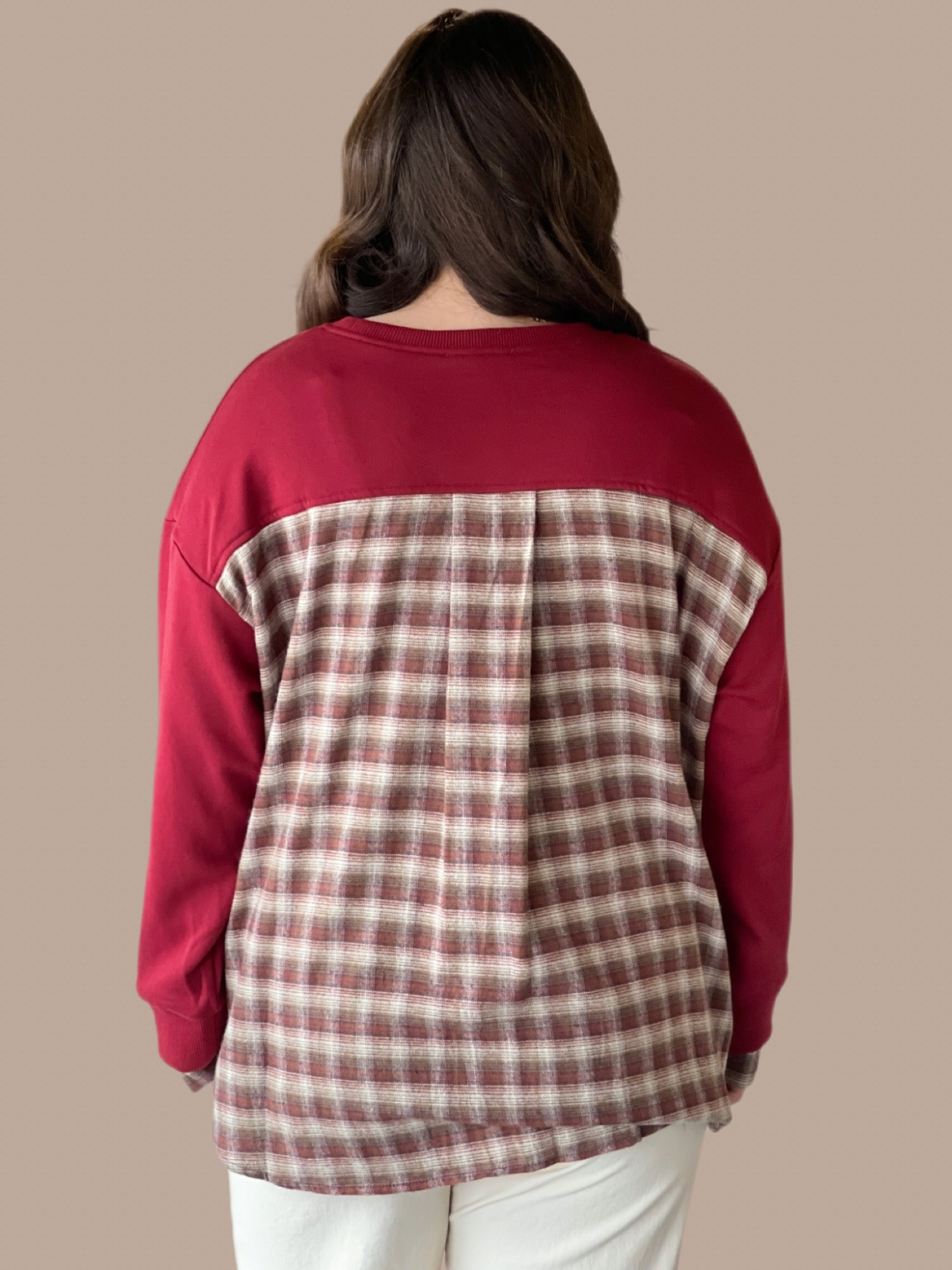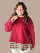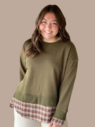 Elevate your casual wardrobe with this sophisticated French terry knit sweatshirt, crafted from premium cotton-blend fabric that delivers exceptional comfort and durability. The long sleeves provide versatile layering options, while the plaid contrasting trim adds a refined, preppy touch that transitions seamlessly from weekend errands to relaxed social gatherings. The structured terry knit construction offers a polished silhouette without sacrificing breathability, making it an ideal choice for those who appreciate quality basics with subtle design details. Perfect for pairing with denim, joggers, or tailored trousers.