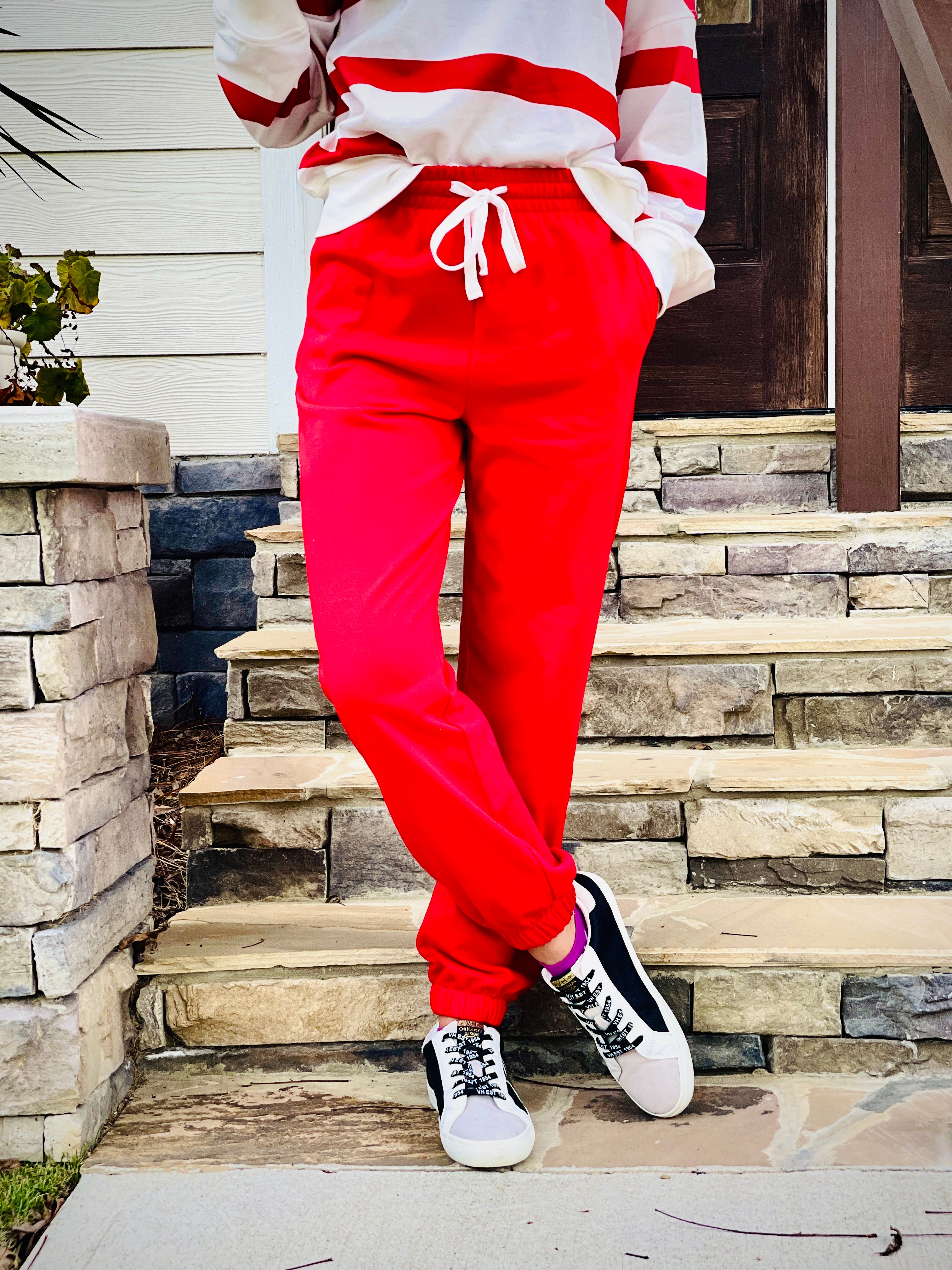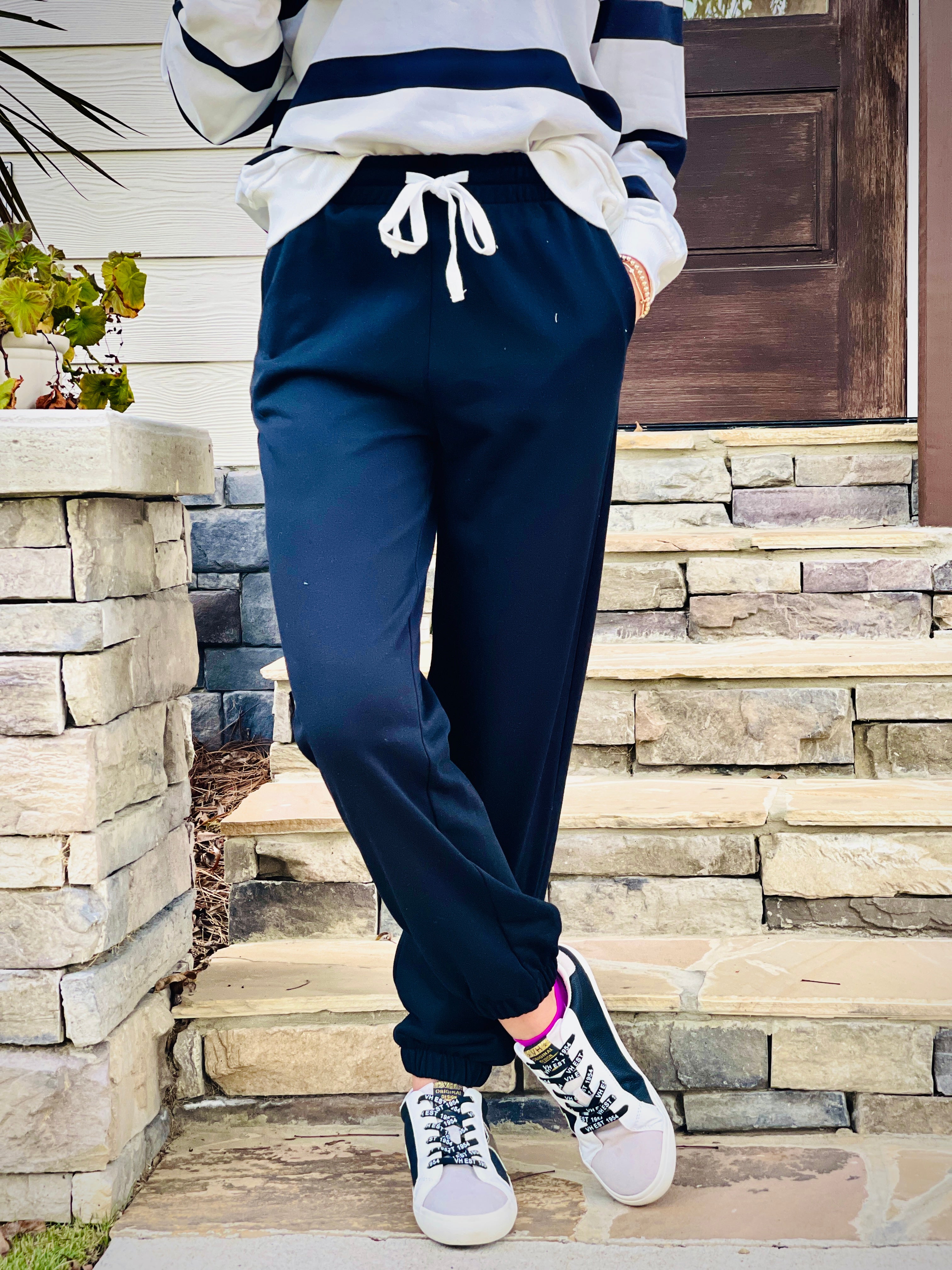 This matching set features a striped design, drop shoulder pullover, and joggers for a comfortable and stylish look. Made with high-quality materials, it offers a cozy fit that is perfect for lounging or casual outings. Upgrade your wardrobe with this versatile and on-trend set.