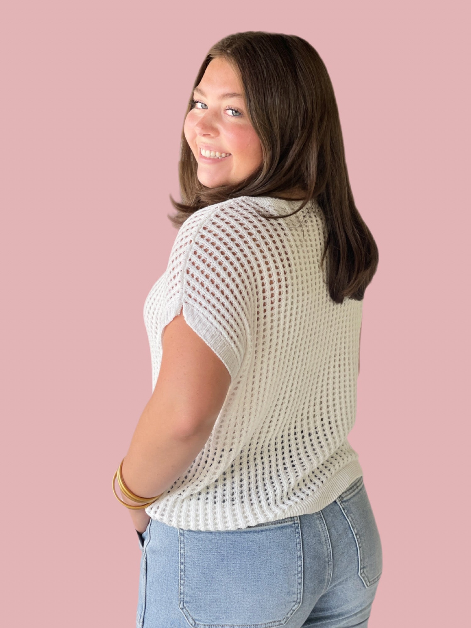 Introducing the Whisper Knit Sweater - a lightweight and breathable sweater that features a viscose crochet knit, providing a sheer and hollow design. Perfect for adding some texture and style to your outfits. Stay cool and chic with this unique sweater.