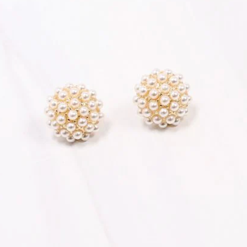 This pretty pearl cluster earring is a staple to pair with any outfit. It can easily be worn for daytime or evening looks. Gold dipped.