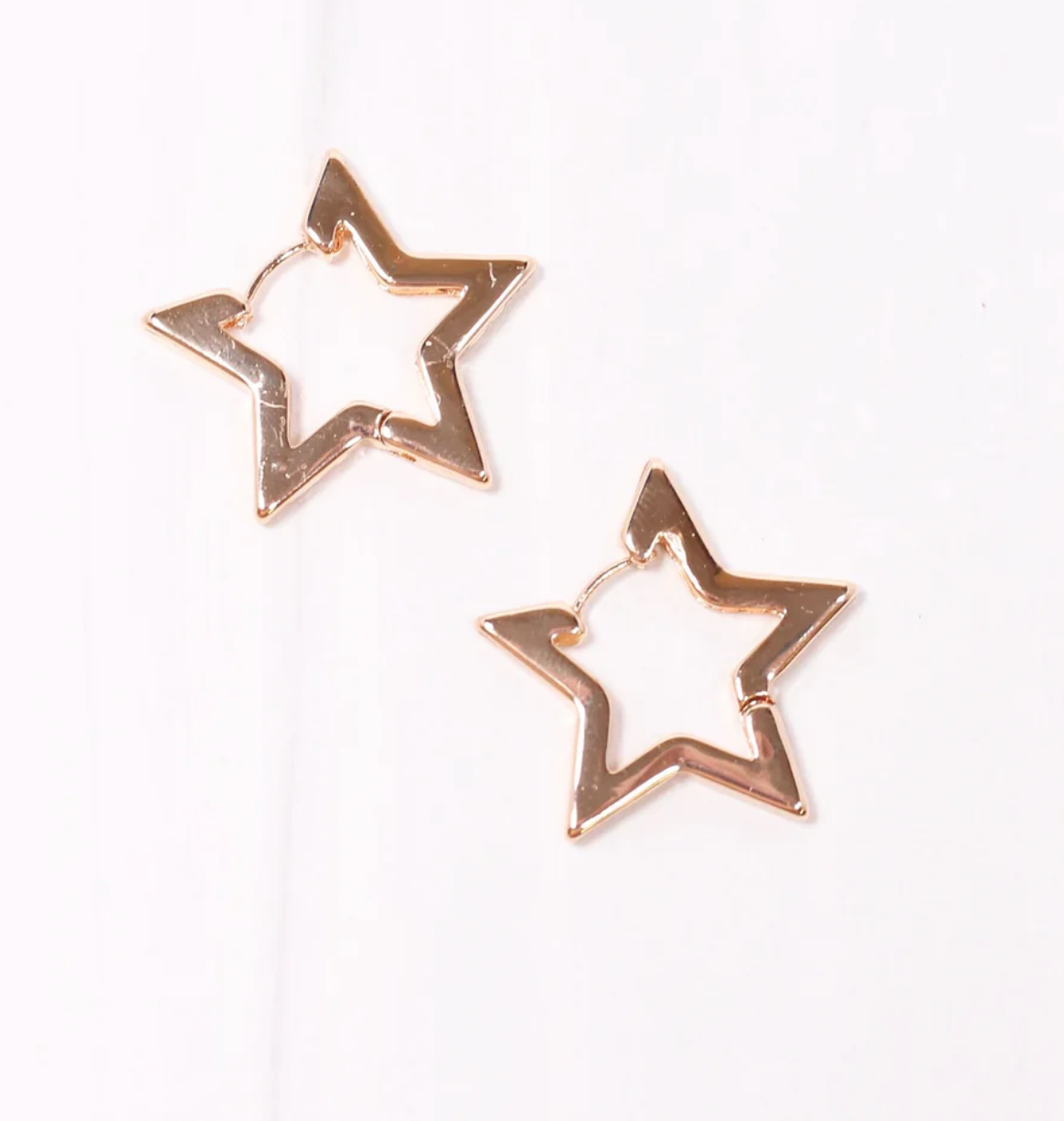 Wear this open star earring for a fun and exciting look! It has a shiny metal finish and a latch closure.