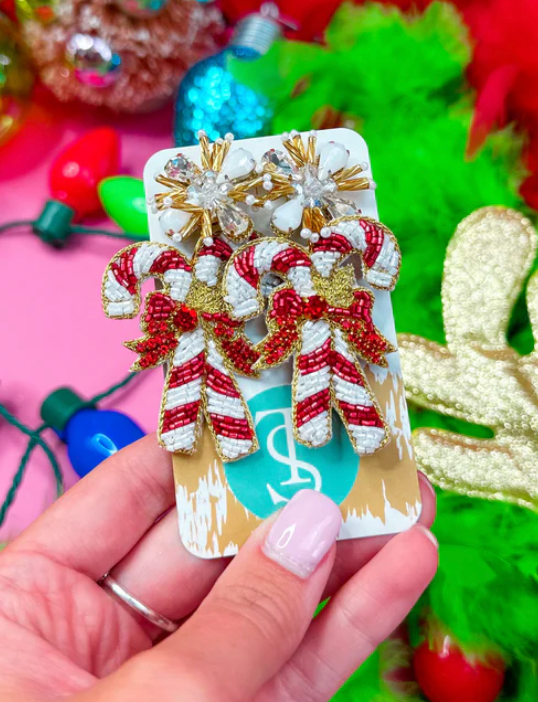 Discover whimsical holiday charm with our Beaded Candy Cane Drop Earrings. Crafted with delicate, hand-painted beads, these earrings add a festive touch to any outfit. The unique design captures the joy and magic of the season. Perfect for yourself or as a thoughtful gift for a loved one, these earrings are sure to spread holiday cheer.