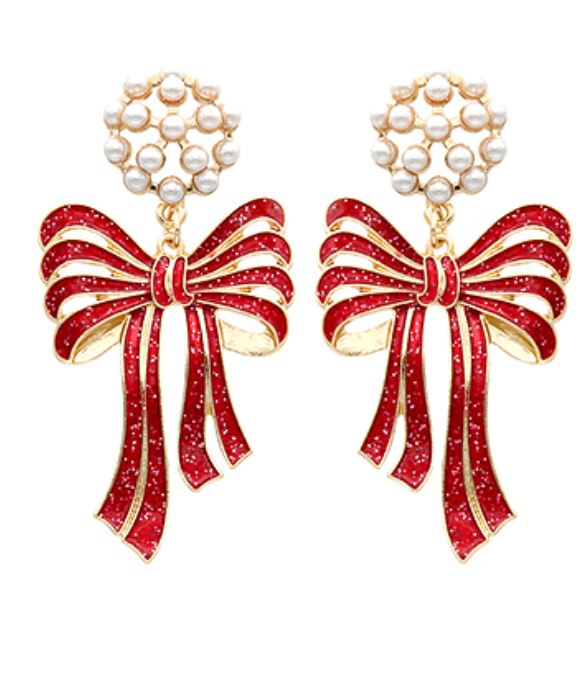 Elevate your holiday ensemble with these charming Festive Bow Studs, featuring lustrous faux pearl accents set in epoxy for lasting durability. Each stud measures 2 1/2" in length and secures comfortably with a post backing, making them ideal for all-day wear. The sophisticated bow design adds a touch of refined elegance to any occasion, from casual gatherings to formal celebrations. Perfect for those seeking timeless accessories that combine style with practicality.