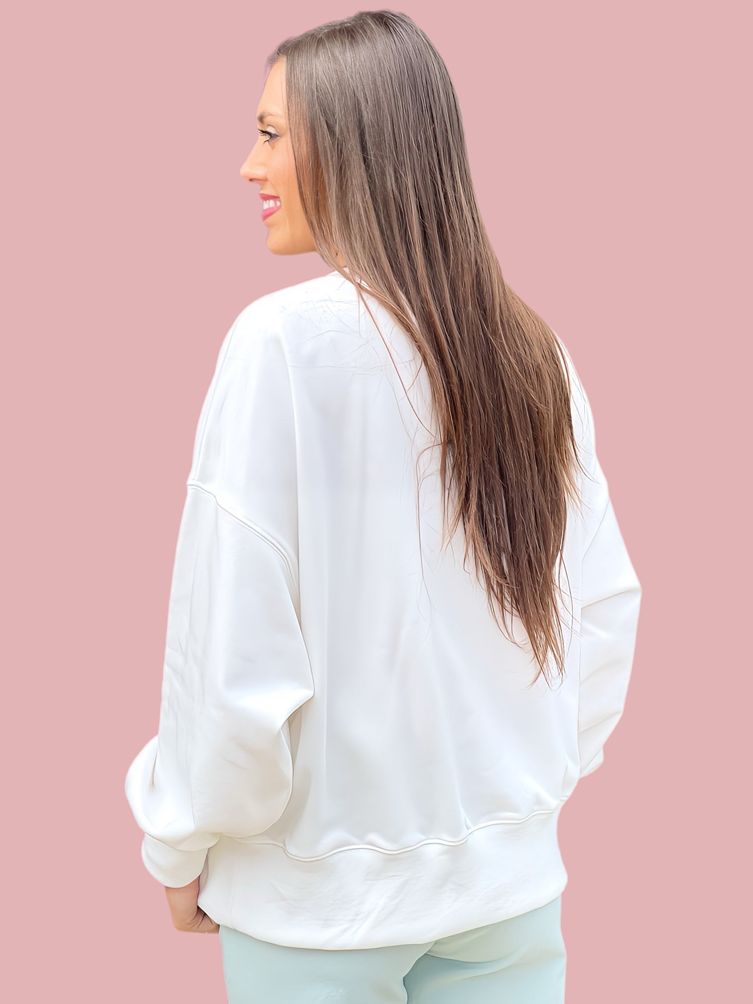 Introducing our Easter Bunny Sweatshirt, expertly crafted with delicate tweed embroidery of the beloved Easter bunny. Made with high quality materials, this sweatshirt is the perfect addition to your spring wardrobe. Embrace the festive spirit and feel comfortable and stylish, all at once.