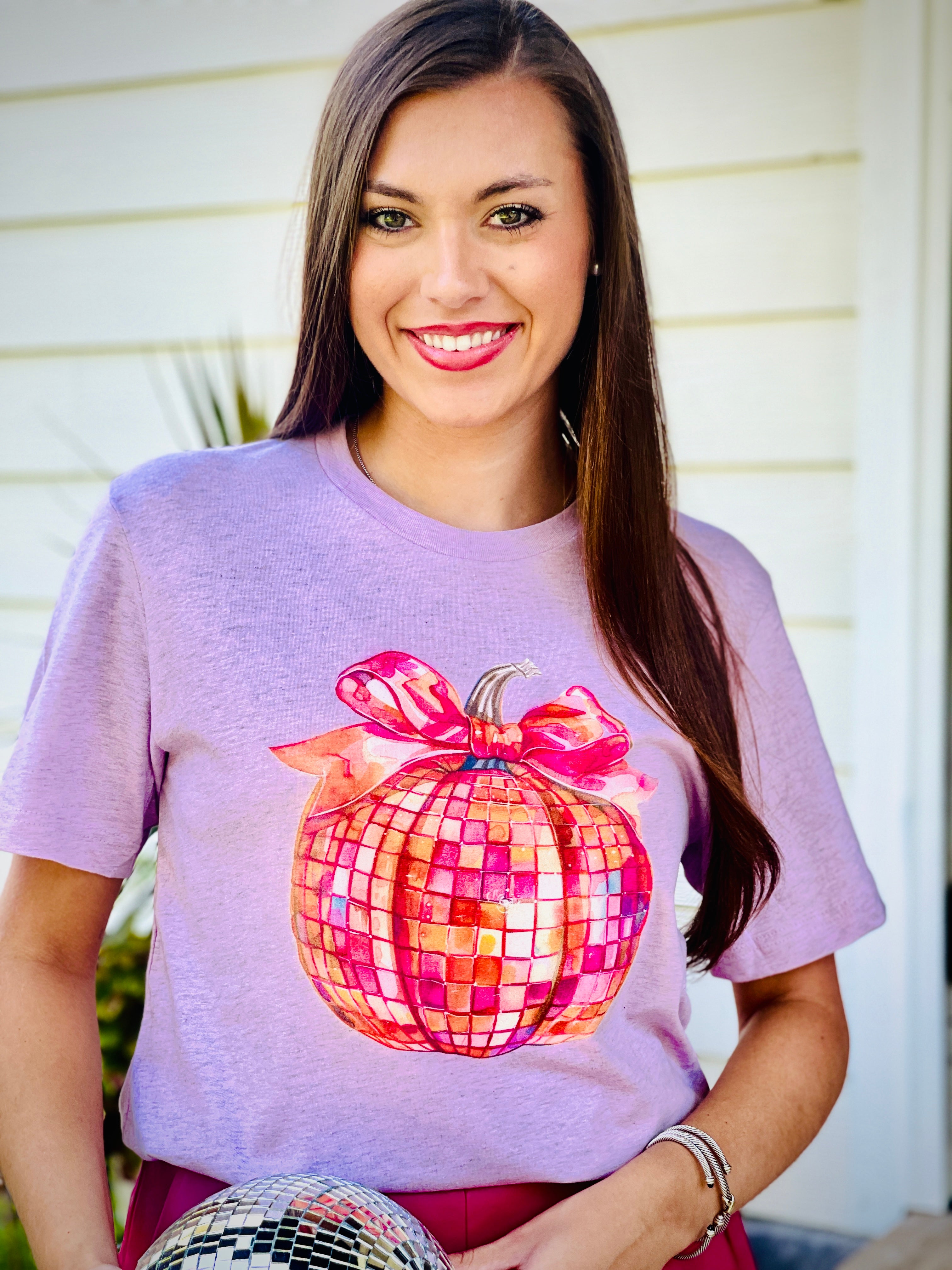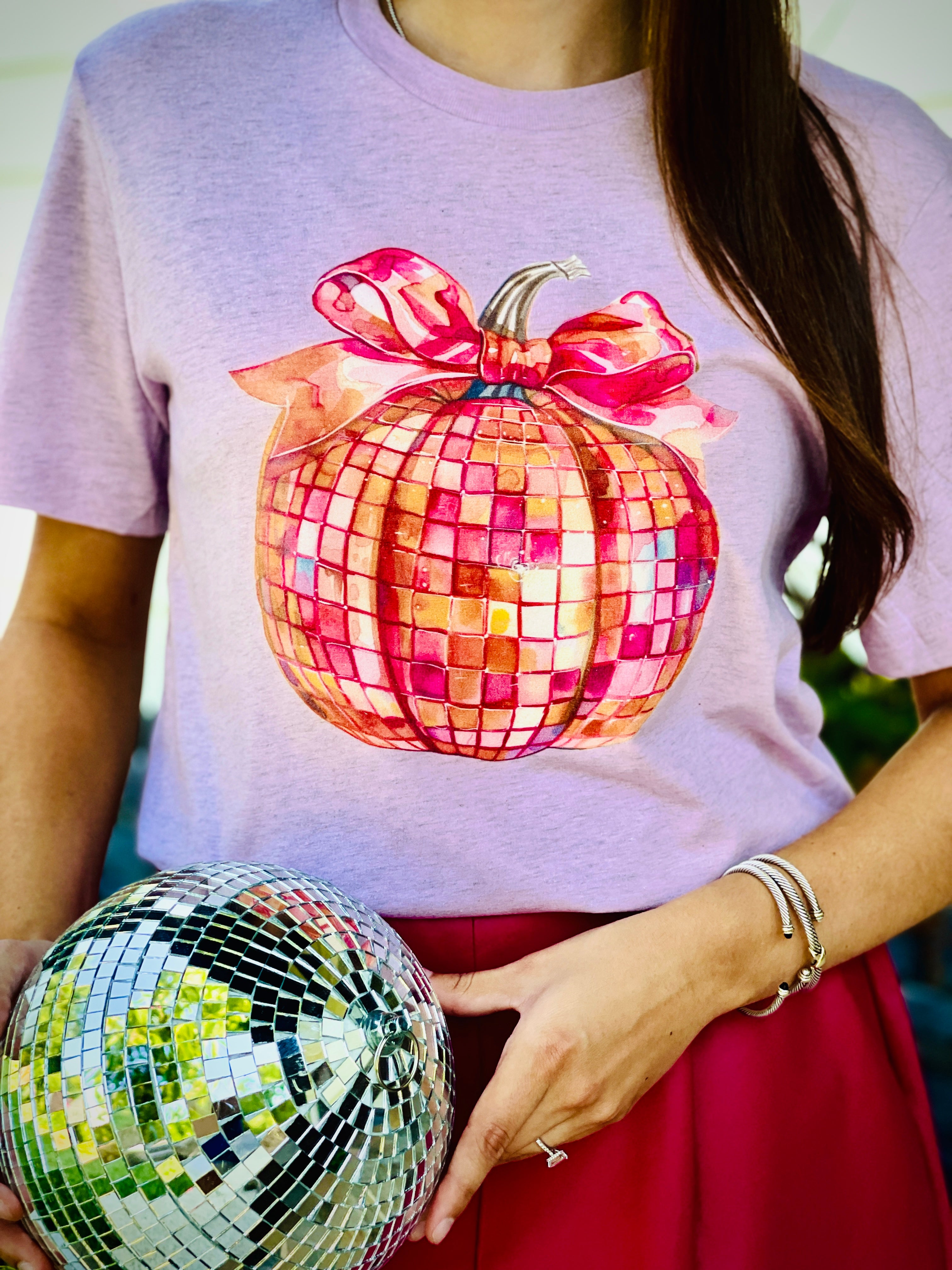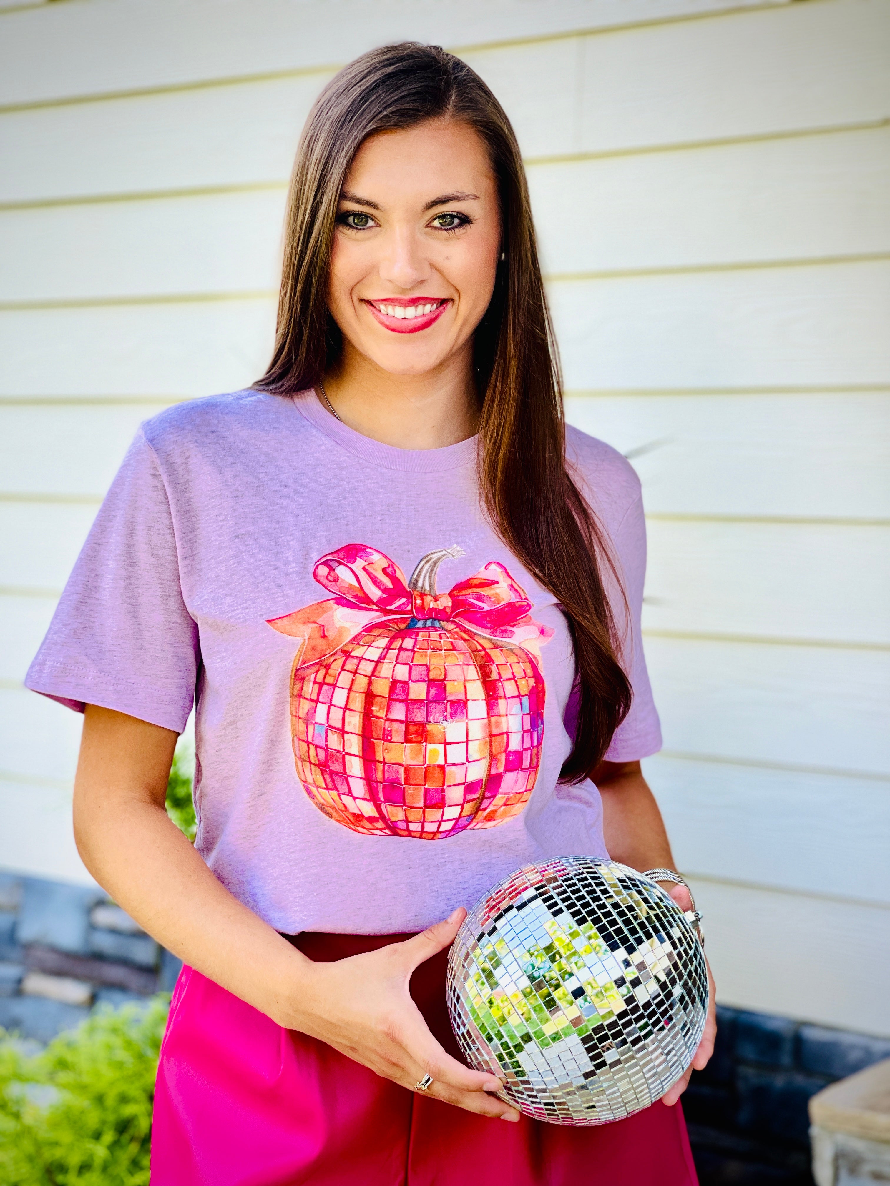 Introducing the Disco Coquette Pumpkin Tee, the perfect addition to your fall wardrobe. Made with high-quality materials, this tee boasts an eye-catching design that is sure to turn heads. With its comfortable fit and unique style, this tee is a must-have for any fashion-forward individual. Embrace the Halloween spirit and stand out in this trendy and stylish tee.