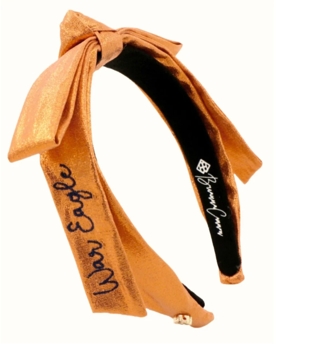 - Orange Thin Auburn Ribbon Bow Headband with Navy Embroidered War Eagle