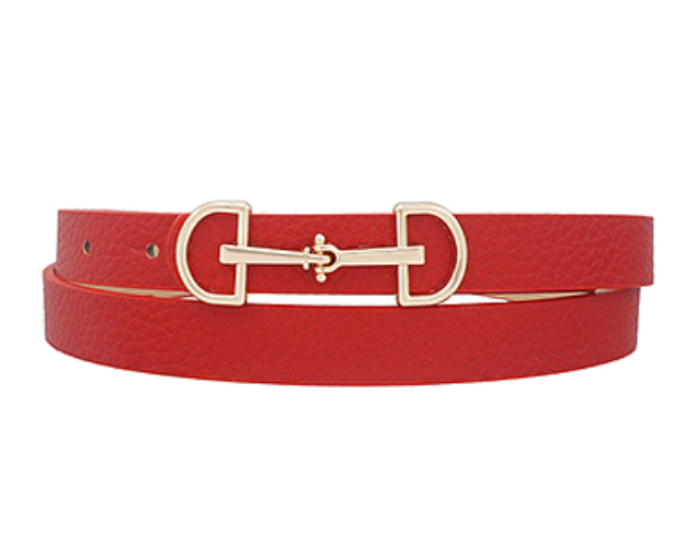 The Horse-bit Buckle Skinny Belt is a versatile, faux leather favorite that defines your waist with timeless style.
