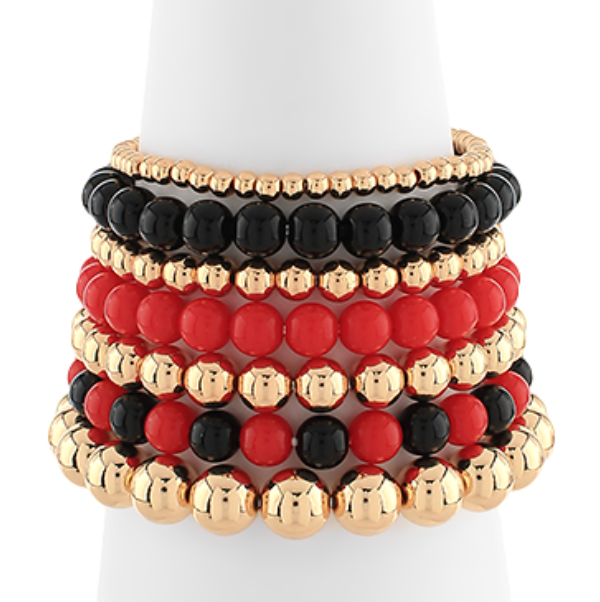 The 7 Row Multi Size Beaded Bracelet blends acrylic & metal beads for a look that’s stacked, stylish, and oh-so-easy with its comfy stretch fit.