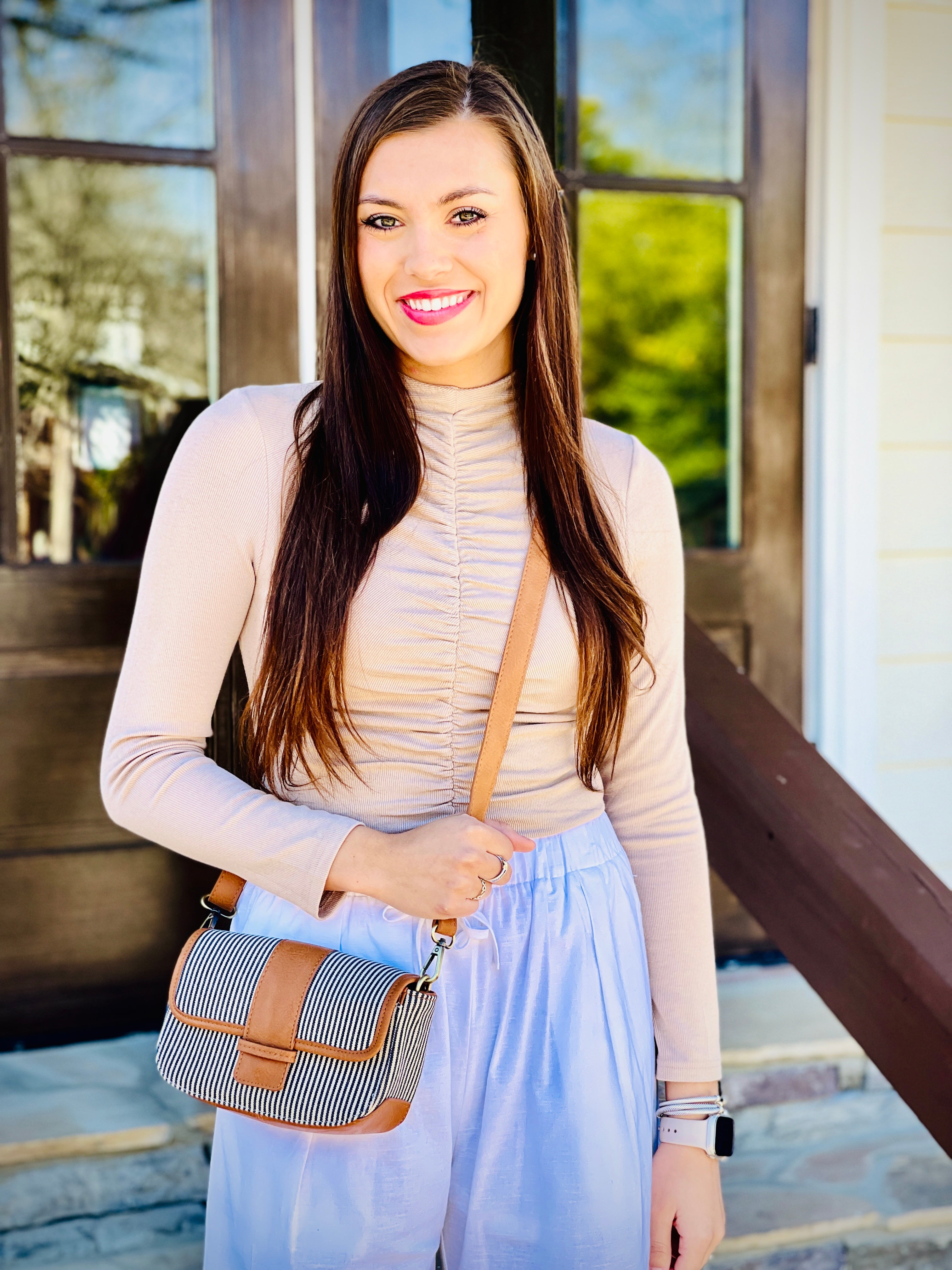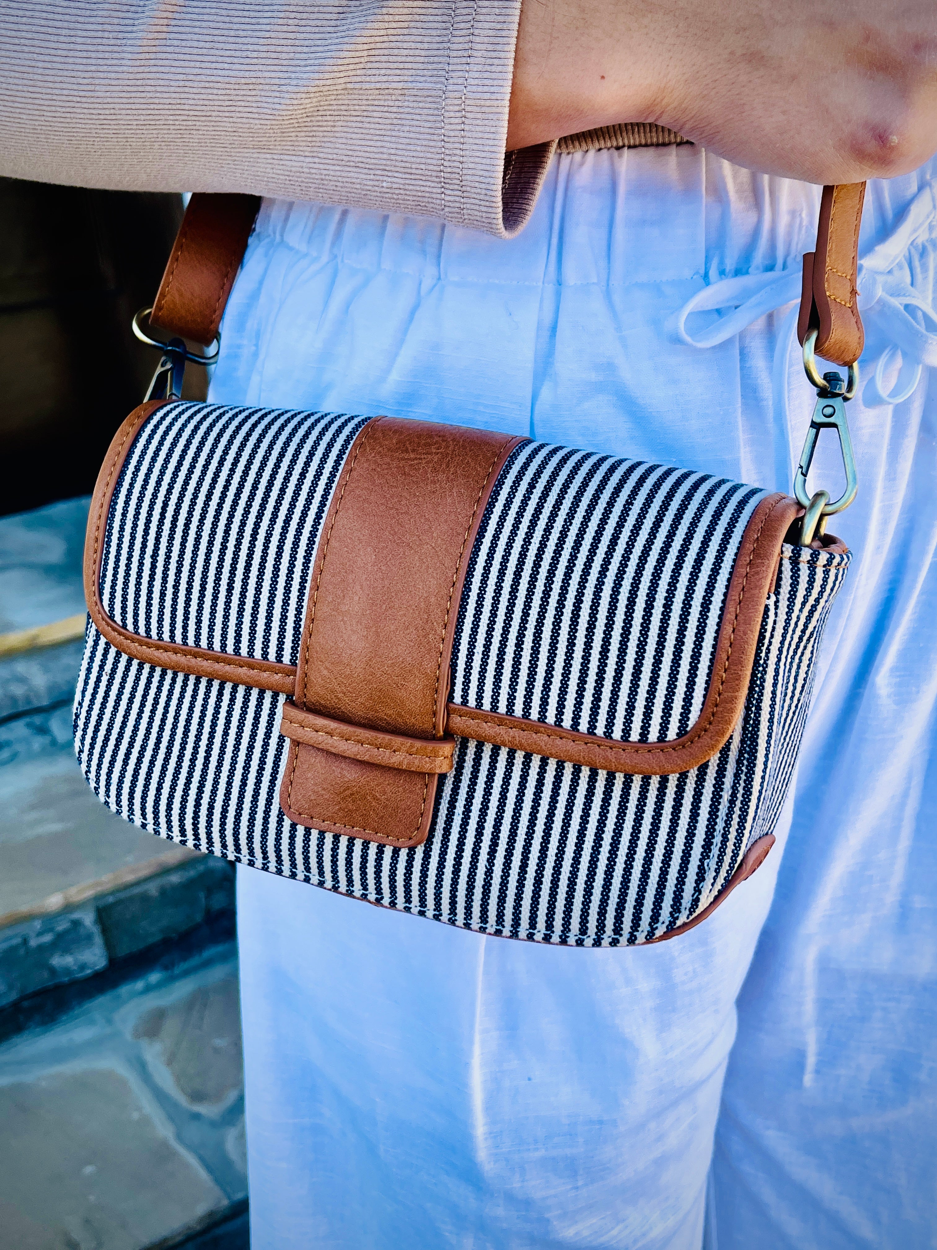 DENIM PINSTRIPE CARMEN CANVAS CONVERTIBLE SHOULDER BAG