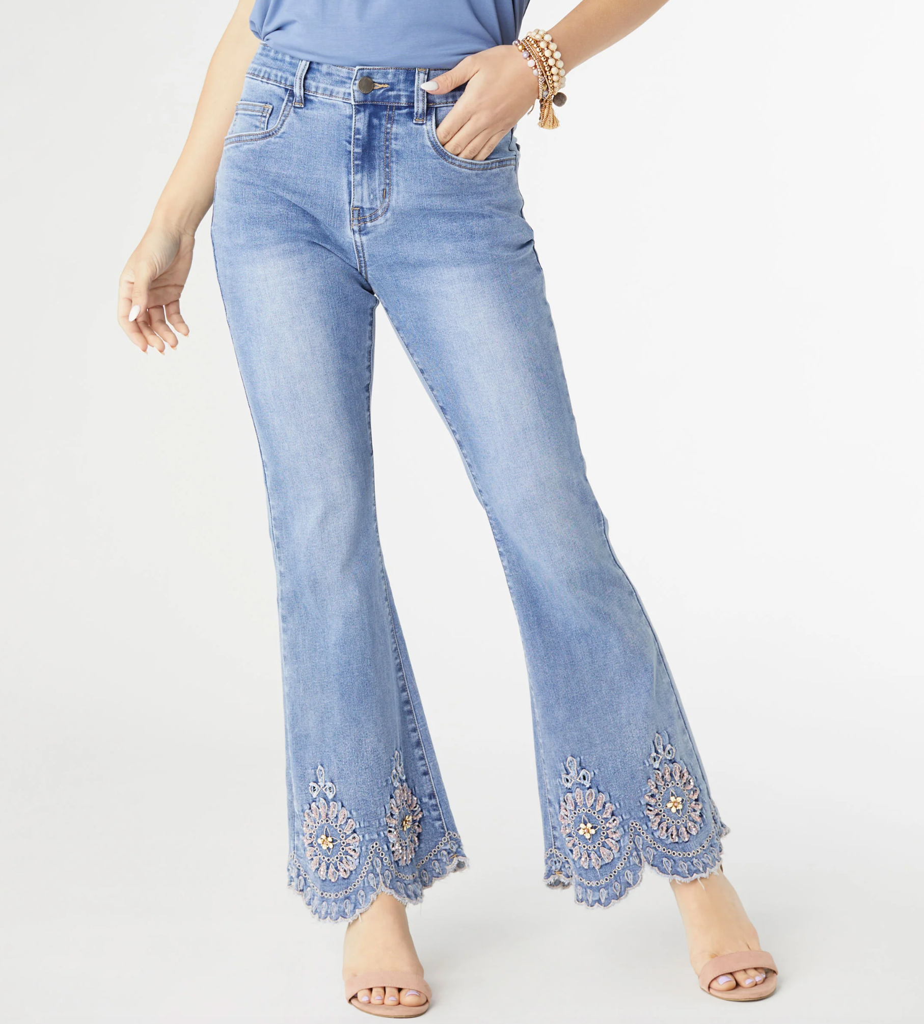 EverStretch Flare with Hand Bead Embroidered Scalloped Bottom