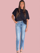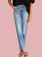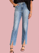 These Judy Blue HW Vintage Wash jeans combine sophisticated front seam detailing with a contemporary slit straight silhouette. Featuring a flattering 10 3/4" rise that sits comfortably at the natural waist and a versatile 31" inseam, these premium denim pieces deliver both style and practicality. The vintage wash treatment adds character and dimension to this essential wardrobe staple.