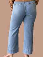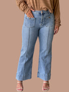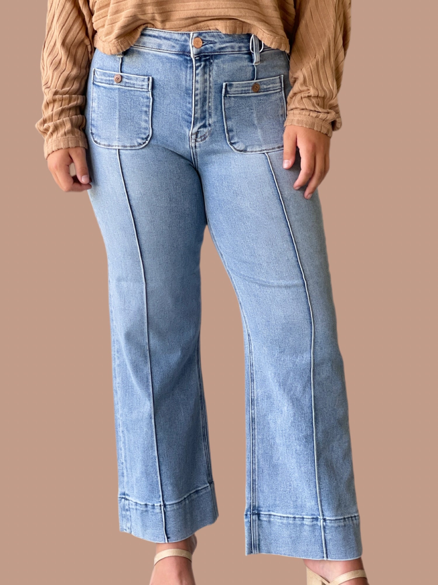 Elevate your denim collection with the Pintuck & Pocket Perfection by Risen. These high-rise crop wide jeans feature precise front pintuck detailing that adds structure and sophistication, while the patch pockets offer practical style. Designed for a flattering fit and modern silhouette, they combine comfort with expert craftsmanship, making them a versatile choice for both casual and polished looks.