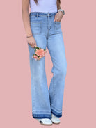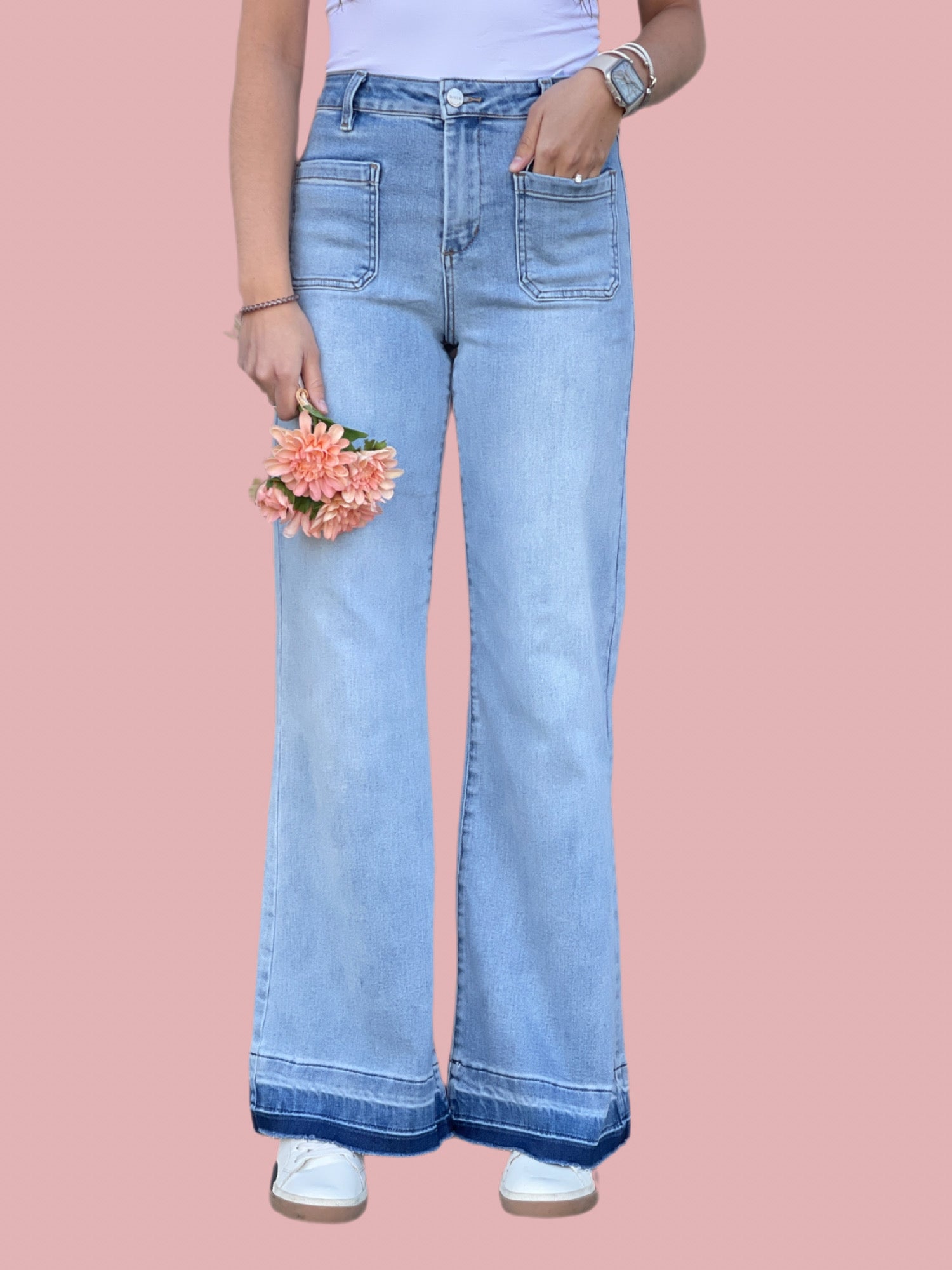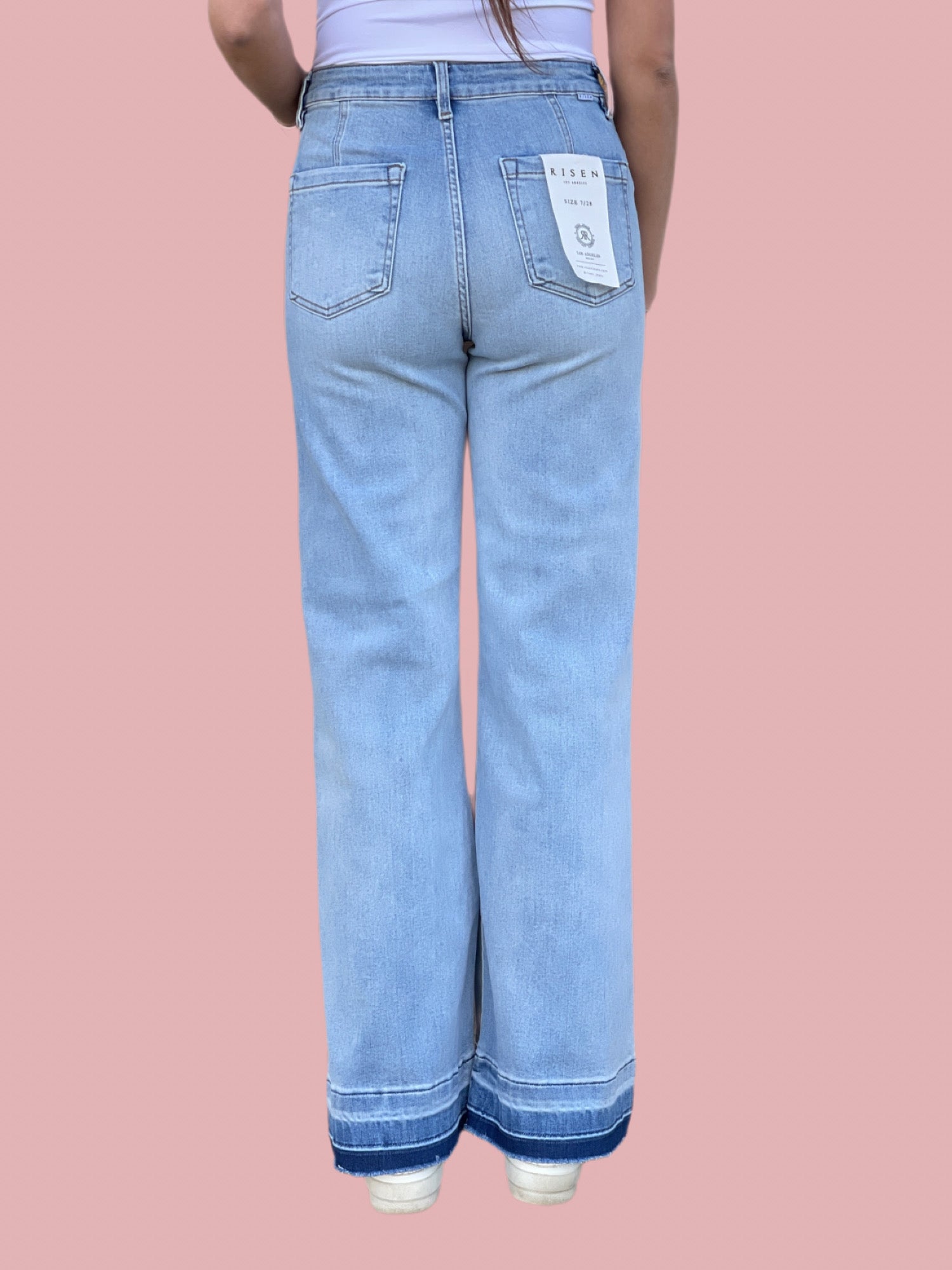 These high rise wide leg jeans offer a comfortable and stylish fit that flatters all body types. Made from premium denim fabric, they provide long-lasting wear and ultimate comfort. Elevate your wardrobe with these versatile jeans that can easily be dressed up or down for any occasion.
