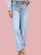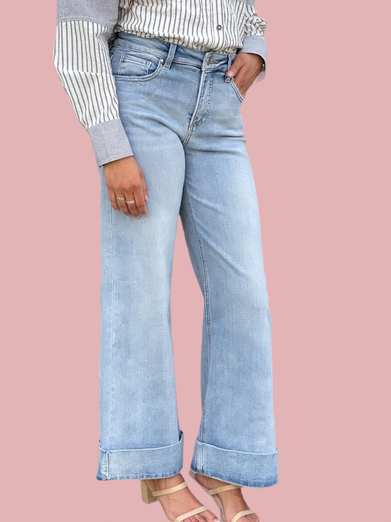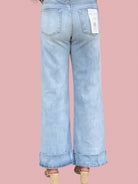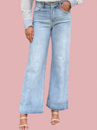 Tummy Control High Rise Ankle Wide Cuffed Jeans